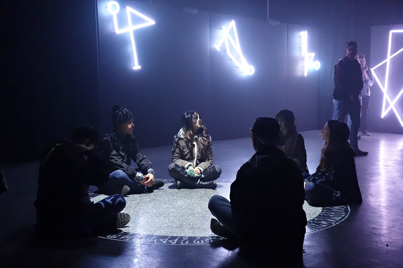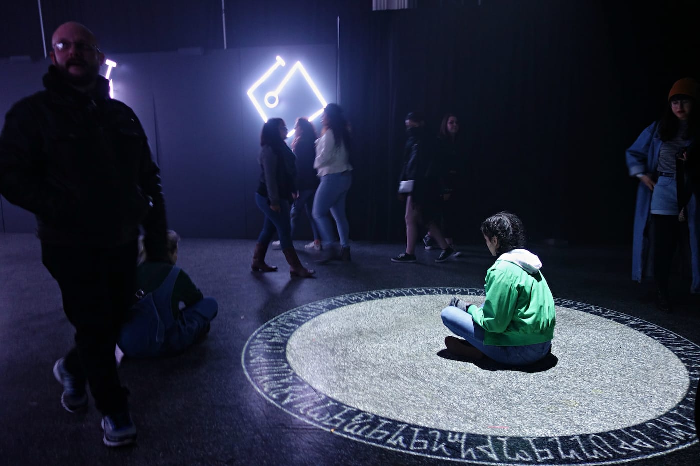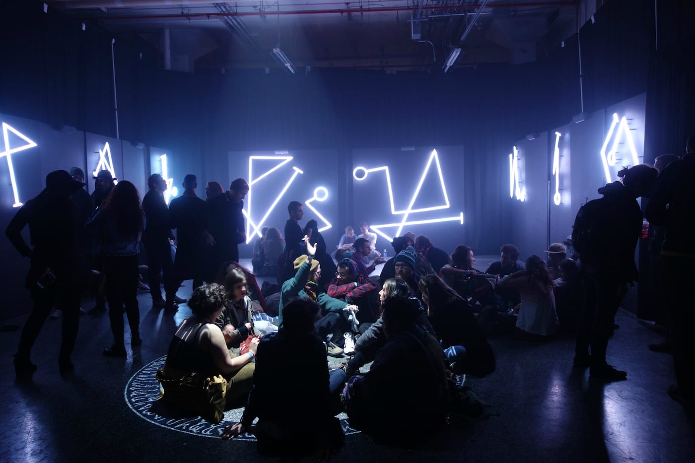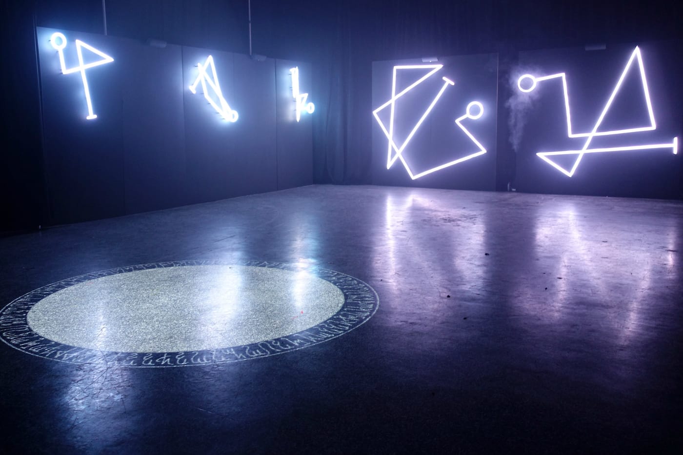 HOUSTON — Damien Echols remembers discovering the symbols of the Hermetic Order of the Golden Dawn when he was around 10 or 12 years old. The ritual magic of the 19th-century organization, which counted W. B. Yeats and Tarot card artist Pamela Colman Smith among its members, harmonized with his growing interest in the esoteric. At last weekend’s Day for Night art and music festival in Houston, a selection of those symbols lit up in sequence on three walls, while a sacred circle rotated in the center. The space was accessible, drawing visitors to gather at the circle’s edges or pose with the angular forms, or sigils, as Echols called them in an accompanying narration.