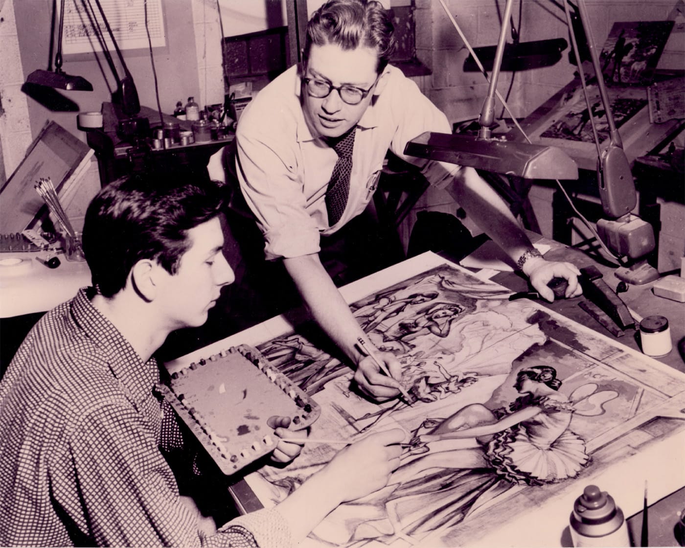 “They hired artists,” she said, “and in fact, they hired someone pretty early on who was a much more accomplished fine artist — and they would first sit down and paint a picture that they wanted to see.” Once the composition was established, they would paint a version of the picture using those paints, and then lay a transparency atop the painting, to generate the shapes that would dictate the color fields to be filled in by users.