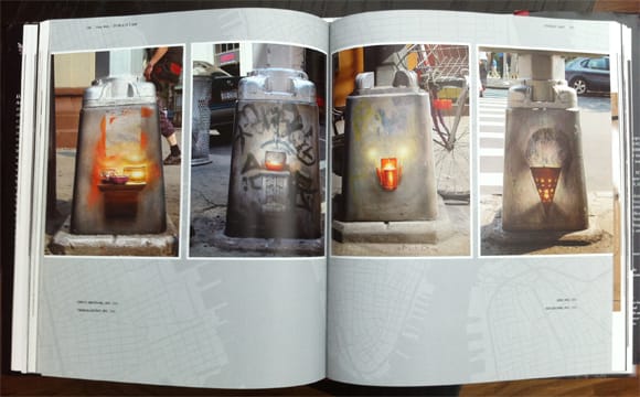Unlike other street artists, Witz has a rich archive (over three decades!) to draw from for his book and they are almost all well documented. There is also an extensive and excellent interview with Marc and Sara Schiller of Wooster Collective, which probes the artist’s background (“…normal, healthy childhood. Nice parents, safe home, supported.”) and early influences (R. Crumb, Magritte, Grateful Dead…), but also does a great job of capturing some of the texture of New York in the late 1970s and 1980s. Witz explains that the realities of creating street art, though still illegal, was “less the danger of getting arrest and more about getting roughed up or mugged.” Boy, how things have changed.