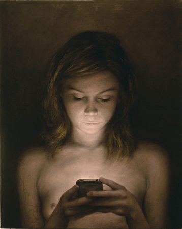 As if the street work wasn’t enough to distinguish Witz, the book includes some of his moody and dark paintings that can feel like they were created by a 17th C. Dutch genre painter dropped in the middle of contemporary New York. Each captures fleeting moments, from a nude women staring into her first-generation iPhone and illuminated only by that erie and momentary light — “Teresa” (2008) — to a bodega’s flourescent glow on a field of blacks and browns. His often large mosh pit works portray a jumble of human bodies in a state of struggle, pleasure, and confusion, all the attributes of being human.