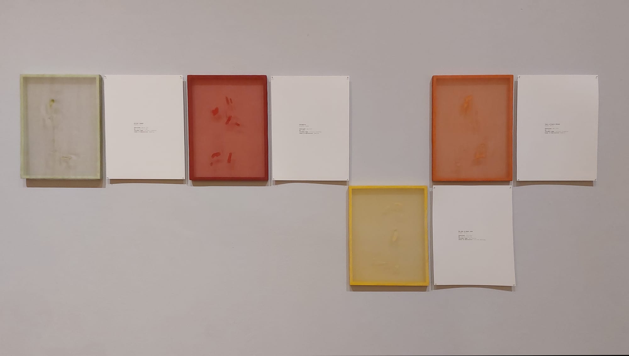 It is a beautiful and understated show, providing a moving foil to the horrifying images currently coming out of Israel’s war in Gaza. Awartani’s practice is concerned with the physical loss of cultural heritage across the region, through acts of war and cultural censorship. Her work records sites of destruction through gentle reparation. For instance, to create her large suspended fabric work “Come, let me heal your wounds. Let me mend your broken bones” (2024), Awartani maps sites of architectural damage and destruction onto translucent textiles. She roughly tears holes in the fabric to correspond to these places, before carefully stitching them back together with color-matched thread. The resulting work contains a web of half-concealed cartography, a peaceful and meticulous record of years of violent erasure.
