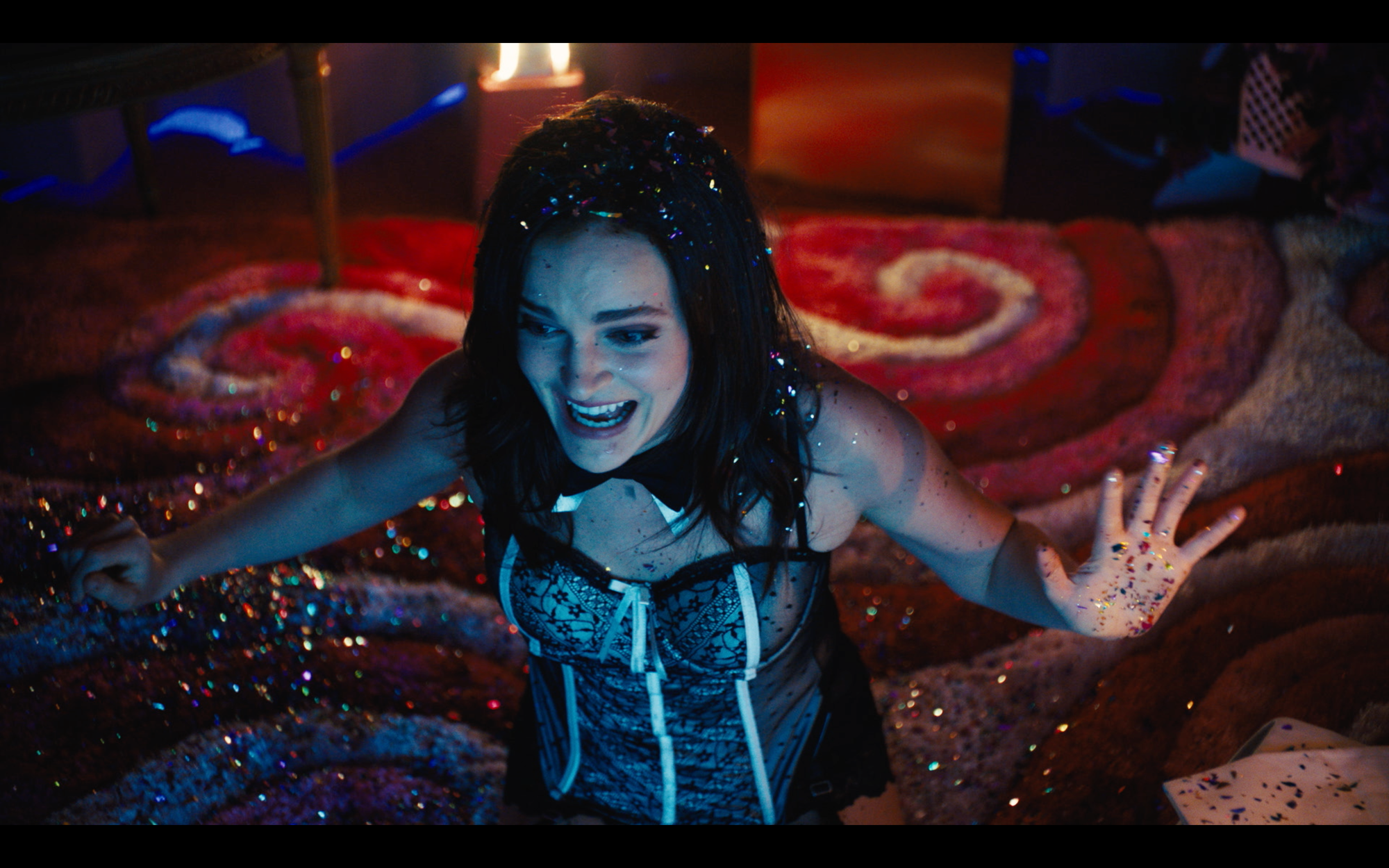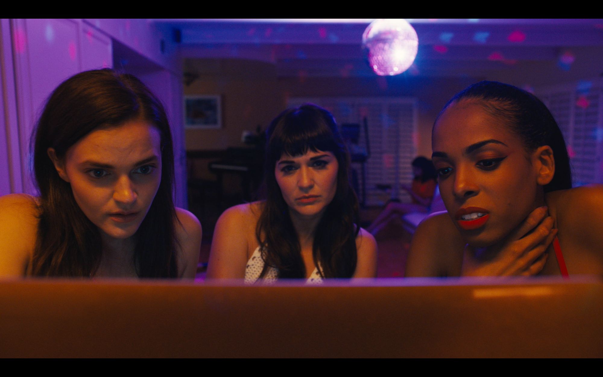 Directed by Daniel Goldhaber, Cam makes explicit the divide between the real world and the camming one. The former is shot in a subdued manner, with desaturated colors. The latter, a realm of coy sexual playtime, is rendered with vivid reds and purples and blues, and shot with more overtly theatrical angles. The segregation isn’t absolute, though. The two styles will bleed together when Alice is working with her fellow models but not yet on-camera, suggestion the internal warm-up that goes into the work, or how the glamour of the cam girl persona drifts into the background of everyday life.