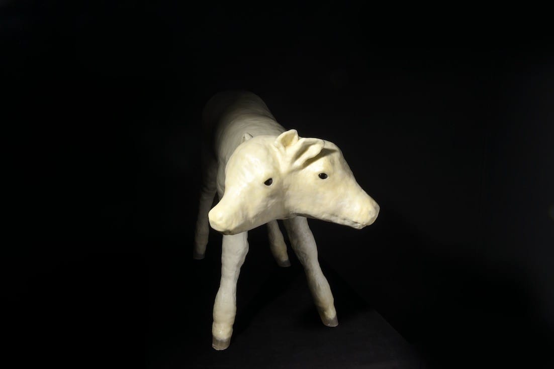 Daniel Pešta’s largest exhibition to date, drawn from his high-flying decade starting in 2007 , which has included three Venice appearances and Second Prize in Painting at 2017’s London Art Biennale, dominates Prague’s DOX Centre for Contemporary Art. Pešta’s work is timely, disturbing and profound. His extraordinary artistic range encompasses photography, video, assemblage, installation, sculpture, drawing and painting; his materials include wax, leather, resin, textiles, paper, plaster, wood, acrylic, latex, gum, paint, neon lighting, and stone. Two generative objects pull this exhibition together. One is red string, signifying blood, genetic coding, fatalism, or humanity’s endlessness, variously. The other is the mask. A central motif in Pešta’s practice, it is meant to evoke disguise, dissemblance, and anonymity.
