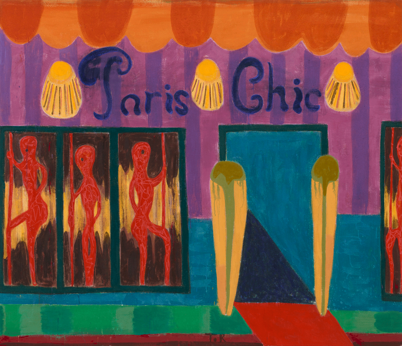 Dann Thorleifsson and Arne Leivsgard, owners of the watch brand Kanske, bought the painting “Paris Chic” (2017) by the Danish artist Tal R for £70,000 (~$90,000 ) at Victoria Miro gallery in London this August. The painting is part of the artist’s “Sexshops” series which depicts the exteriors of sex clubs, massage parlors, strip clubs, and red-light districts from around the world.