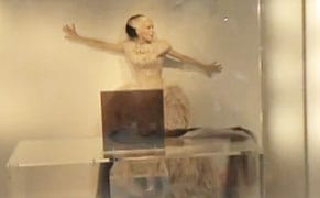 The anticipation of Guinness’s new work was compounded by the announcement that her luxe apartment was put on the market, probably to avoid anymore million-dollar lawsuits because she has a habit of flooding her neighbors’ apartments. Strange that she’s compelled to occupy a public space to act out her intimate processes, when her art-filled home was seemingly ignored to some degree. It makes some sense, I suppose; she’s more mannequin than human (a high compliment if I ever gave one) and this extremely visible performance seems somehow strangely more intimate for her. Maybe Guinness would be better off living in a window display, a la Edina and Patsy in the infamously campy British sitcom Absolutely Fabulous.