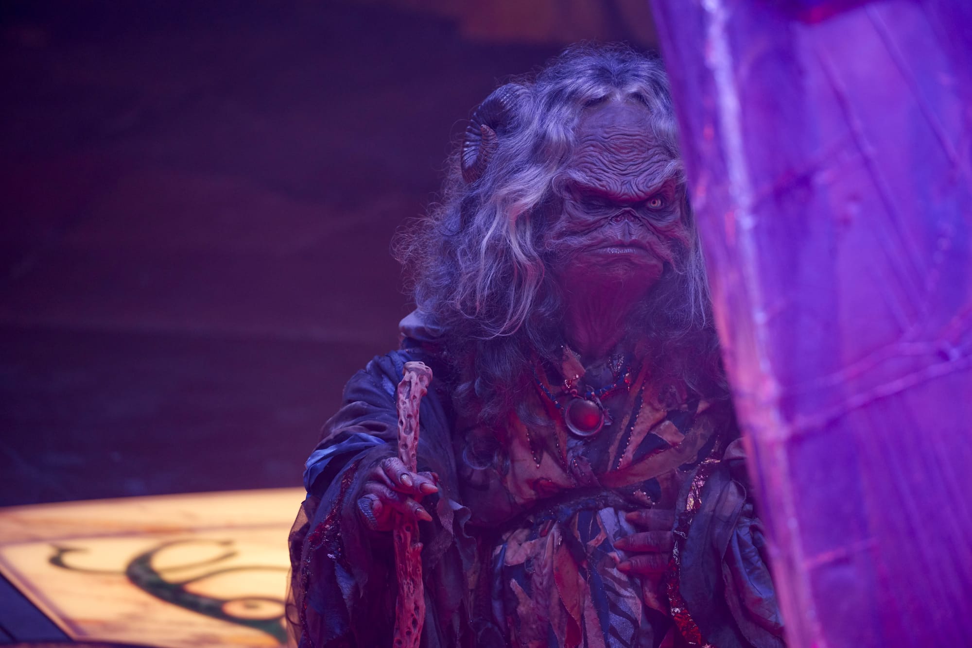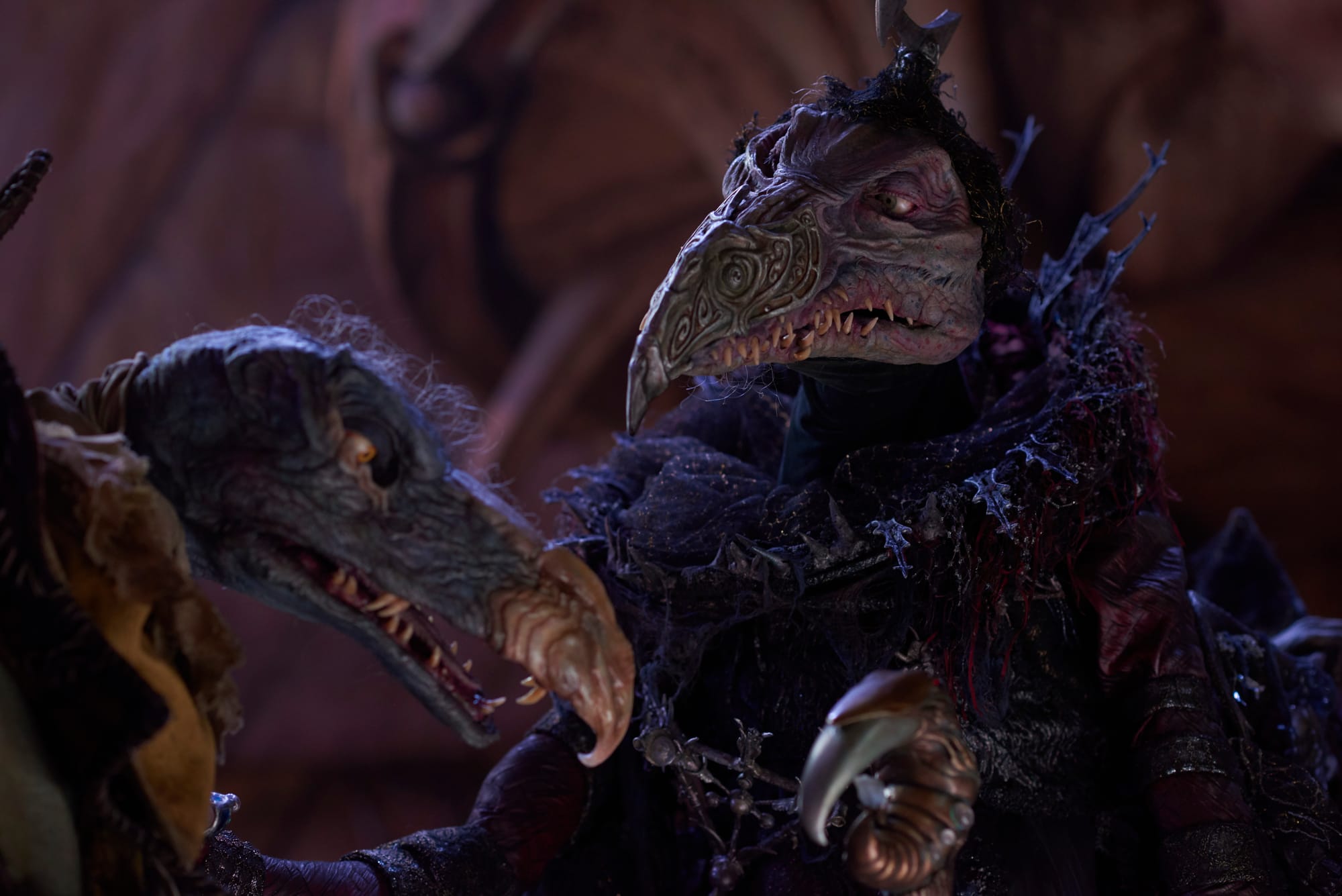 It helps that the show is working from one of the most unique, beautiful fantasy films ever made. Brian Froud, the concept artist for the original movie, returned to help expand on his own designs and maintain visual consistency. The world of Thra feels like its own entity, not trying to rip off the look of The Lord of the Rings, Harry Potter, Game of Thrones, or any other franchise. If nothing else, it is consistently a total treat to look at, with the crew fabricating some delightful new creature or environment. Denizens of Thra include the adorable Gelflings, the intricately grotesque birdlike Skesis, and the horned sage Aughra (a puppet with an astounding level of subtlety in its expressions). My personal favorite is a stone automaton named Lore, who communicates like a record player, “talking” by touching a needle to etchings on a rotating arm.
