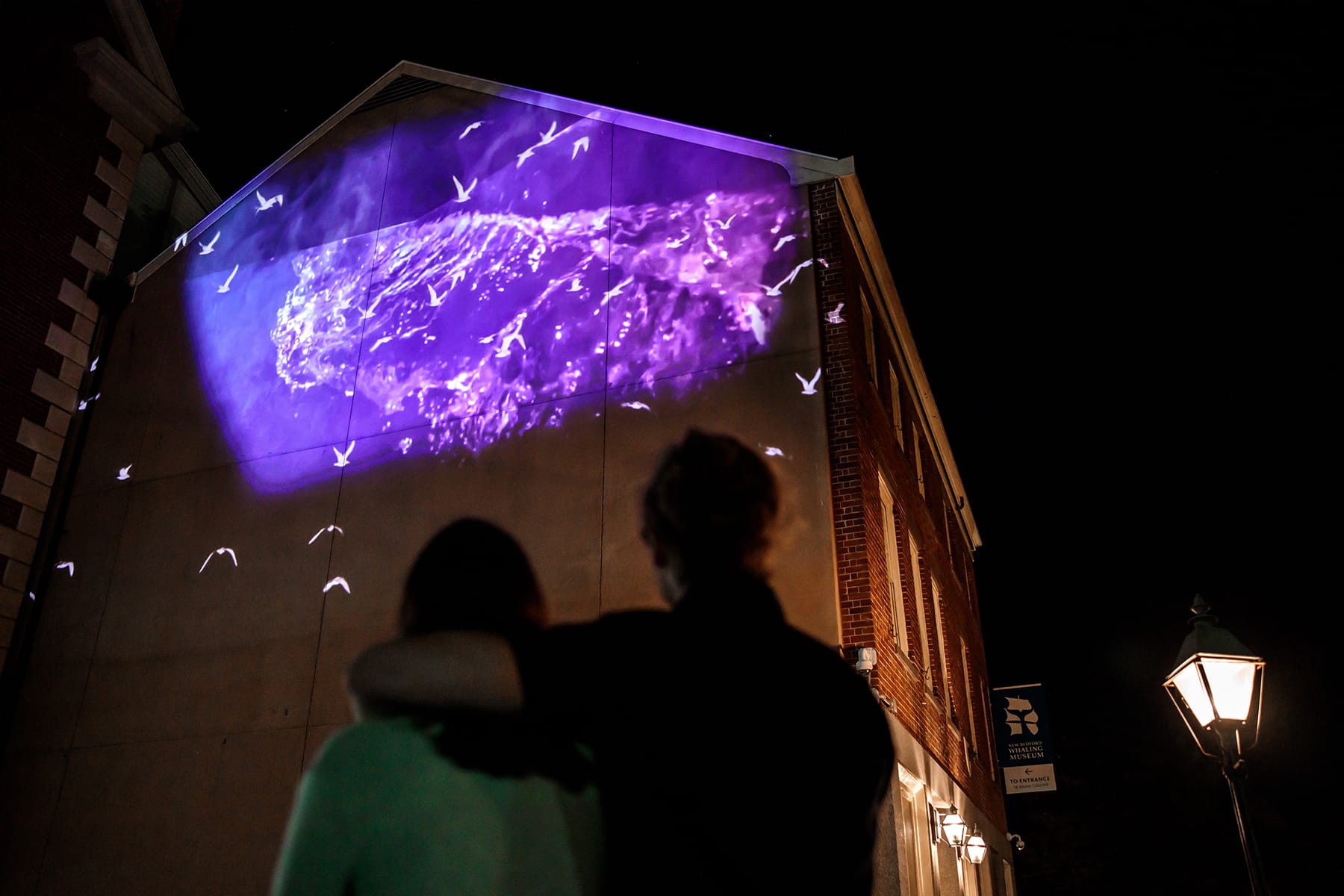 Visitors can view “VESSELS” now through August 1 on three different buildings along Union Street in downtown New Bedford, illuminated daily from sunset until midnight.