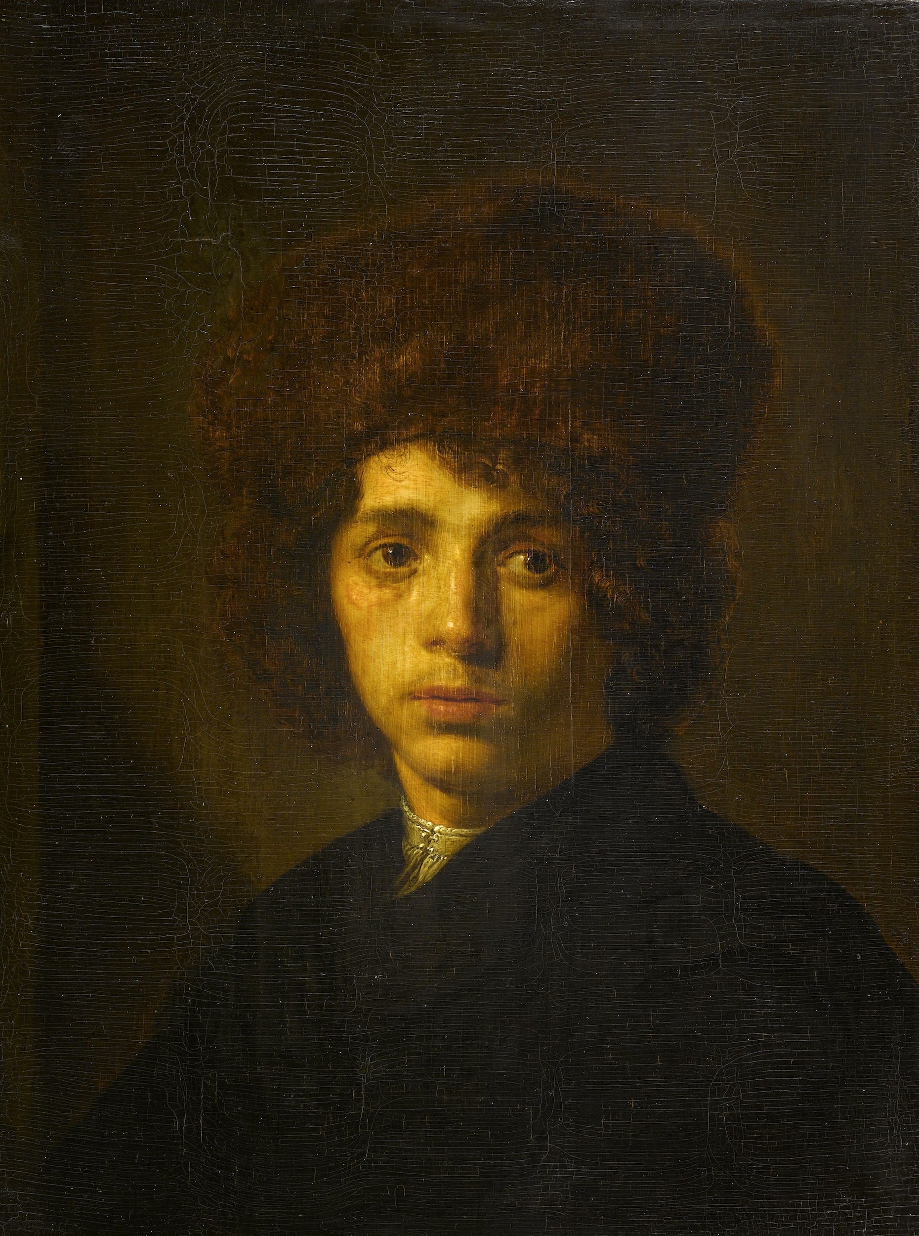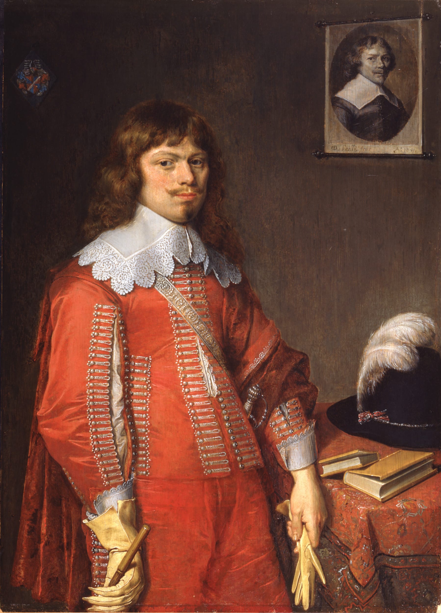 “Vanitas” is a showstopper. A young man holds a maulstick in one hand and a small portrait of an older man in the other hand. The portrait rests on a table alongside an assortment of artworks (copies of a Frans Hals drawing and some Flemish sculptures), books, a pipe, jewels and finery, and a portrait of a woman. The general idea, that vanity causes things and people to decay, is familiar. But who are the man and woman in the smaller paintings, and the man at the left holding one of these portraits? And what do their images collectively say about vanity? In general, we can identify Bally’s sitters; he was skilled at capturing likenesses. His “Portrait of Christian Rosenkrantz” (1641) incorporates a small monochromatic painted self-portrait pinned to the canvas at the upper right-hand corner. Like a signature, it identifies the artist who made the larger portrait. But in “Vanitas,” it isn’t obvious how the meaning of these portraits come together.