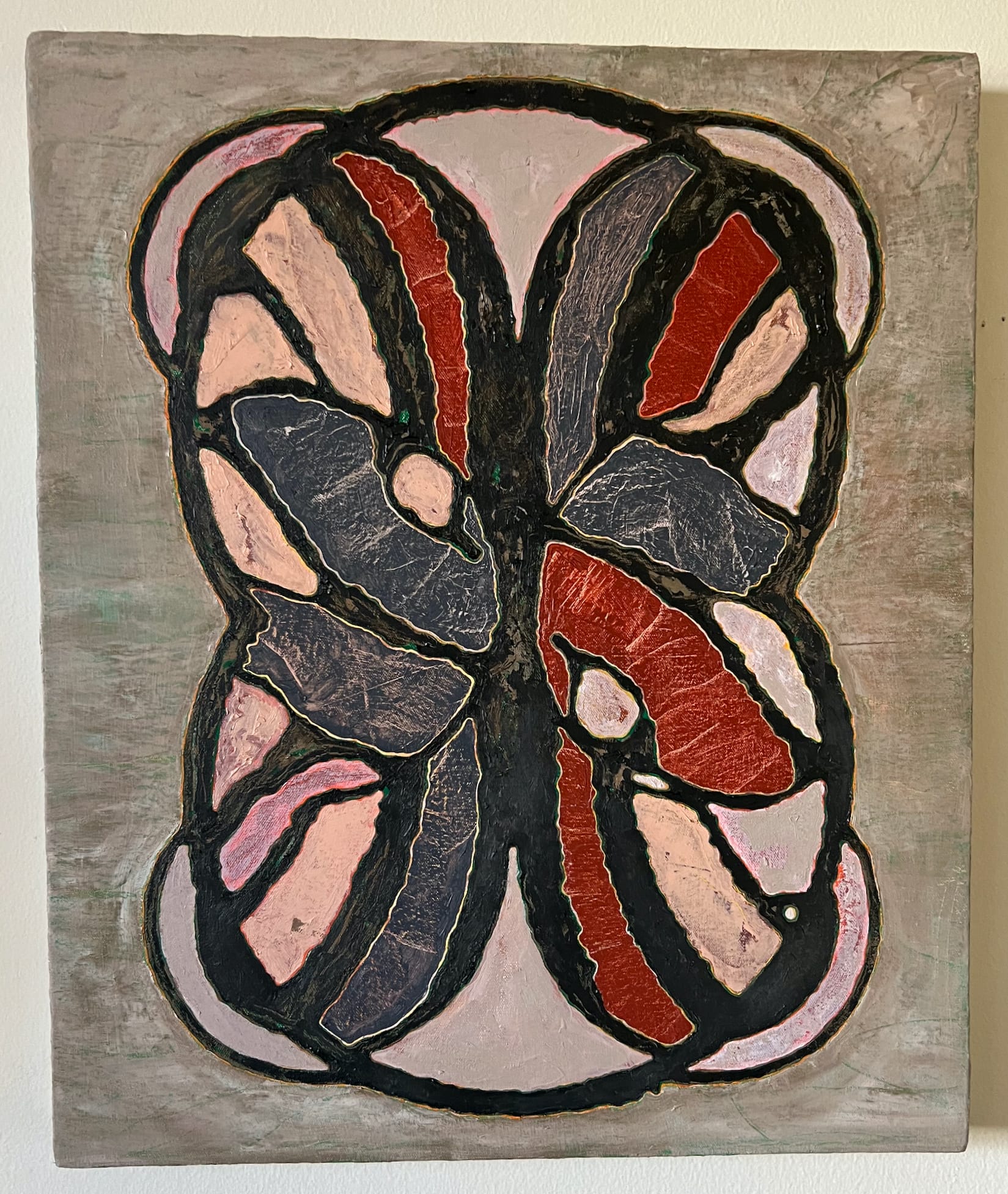 While explaining his process to me, he told me that he had studied Indigenous Rock Art in remote canyons of the Southwest United States, as well as the architecture of Andrea Palladio in the Veneto of Italy, and outsider art in Lausanne, Switzerland, which houses the Collection de l’Art Brut. He added that Carl Schuster and Edmund Carpenter’s multivolume study Patterns That Connect (1996) was “an abiding touchstone” for his work.