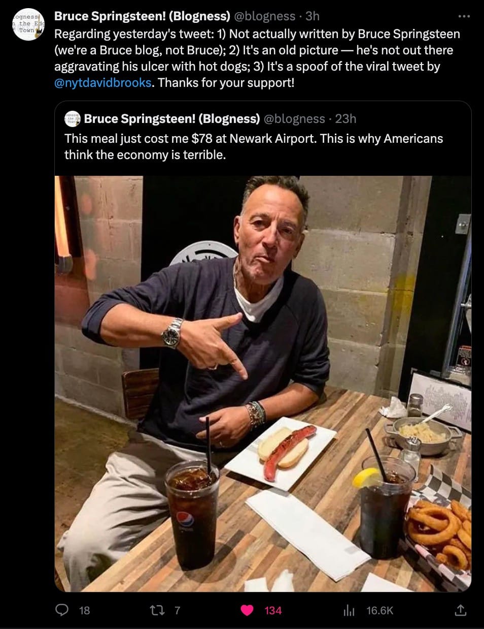 It looks like everyone from the regular web user to "the best Bruce Springsteen blog on the Internets" has set aside Girl Dinner in favor of the $78 airport meal ...