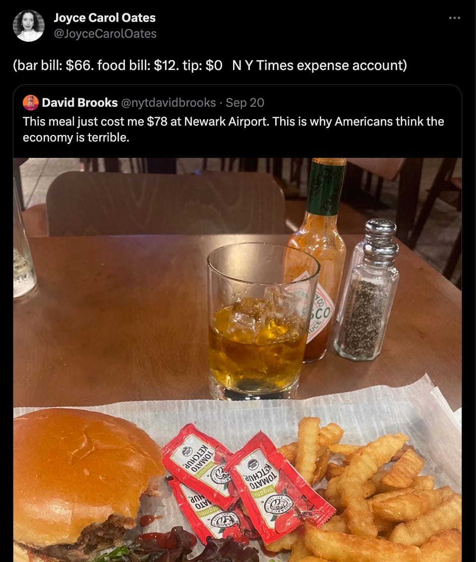 Naturally, Joyce Carol Oates couldn't and wouldn't stay out of it, either ... And if you check her X account, she's been keeping up with the "D Brooks Special" Discourse like it's a sport.