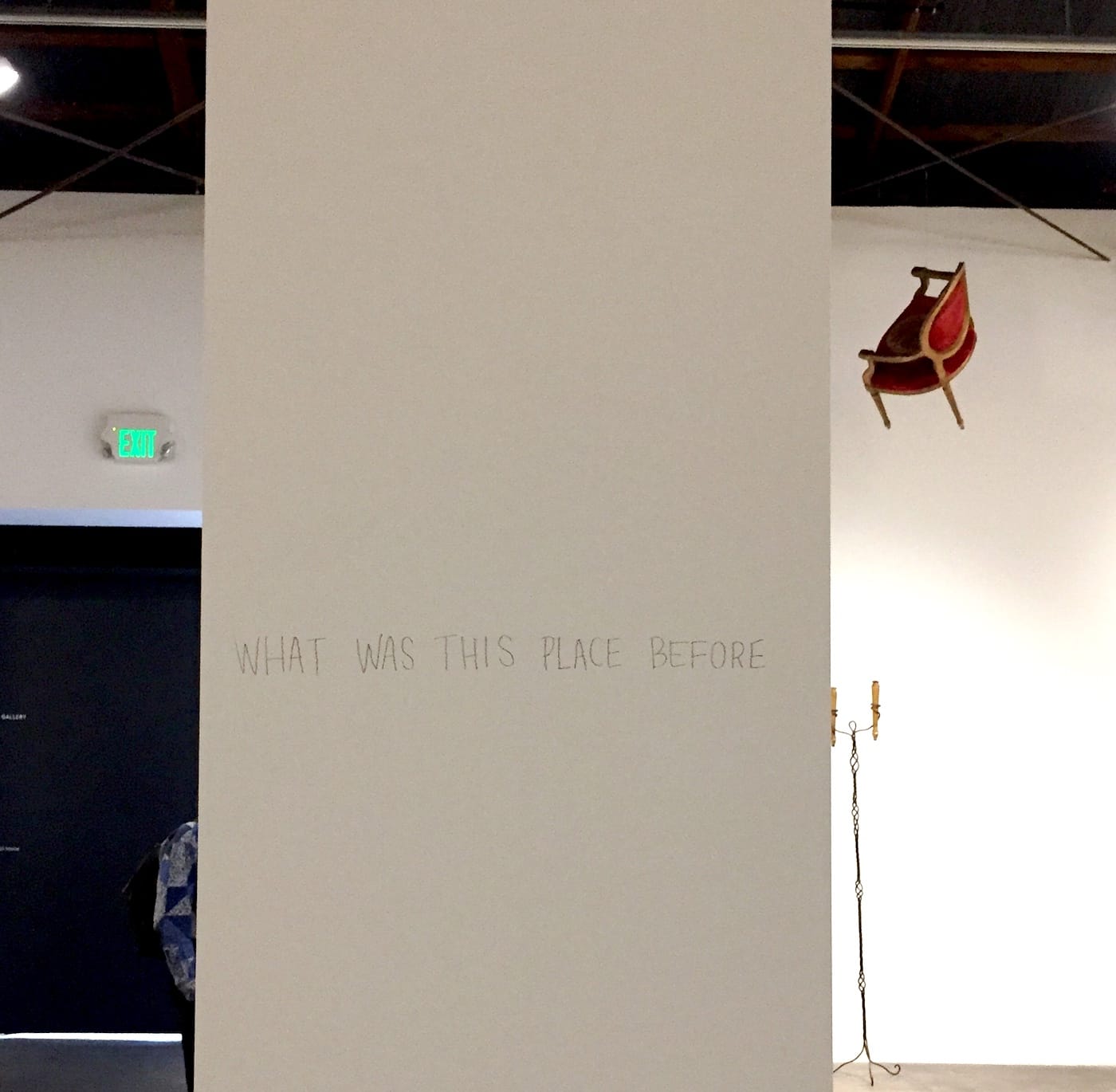 Hammons’s discord with the commercial art world is a strong undercurrent in the show. It’s evident in the nylon tents that lead up to the gallery. Hammons’s wry observations are literally written on the walls, speaking in code to anyone willing to listen. Hammons doesn’t force easy interpretations of his work; instead he calls on viewers to apply their own lived experience to draw their own conclusions.