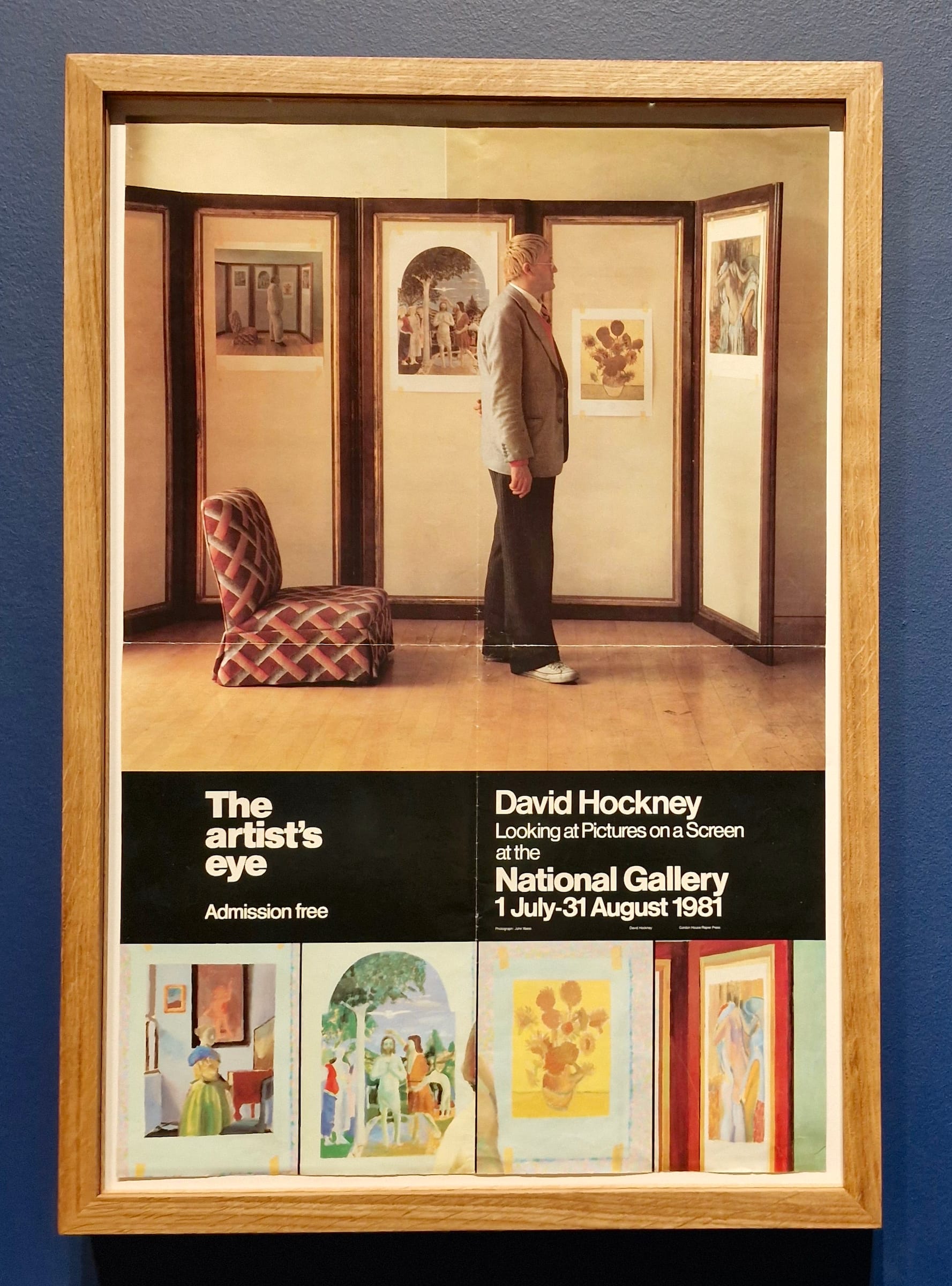 Hockney’s sentiment foregrounds another role of the institution: to inspire artists. Captions explain that until the 1940s the National Gallery was reserved for artists two days a week, and from 1838 to 1869 it shared premises with the Royal Academy. A poster from Hockney’s guest slot on its Artist’s Eye exhibition series, in which contemporary artists were invited to respond to the museum's permanent collection, demonstrates its ongoing policy to support cutting-edge art making. Emphasizing its significance even further are gushing letters from Hockney; in 1979 he told its then-Director Michael Levey, “I love the collection of the National Gallery,” and requested permission to copy and photograph details of its paintings.