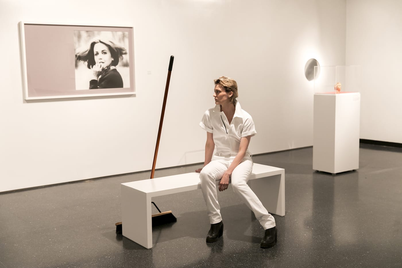 At the Brooklyn Museum, the monologue is performed by multiple actors in a gallery space for which Levine has selected the objects: a head of Nero, an antique goddess with a broken nose, and several photographs enlarged and re-printed by Levine. The monologue tells a story about the actor or actress who is performing, an all-too-familiar tromp through thespian drudgery: hopeless auditions, the money drain of even more acting classes, giving it a go in Los Angeles, and giving up Los Angeles for New York. The spoken text is scripted and plainly impersonal and artificial, since it’s performed seriatim by different actors over the course of museum hours during the exhibition. At the performance I attended, there was also a prompter with a script, and the actor called for a line at one point. The script that is being recited, however, says it’s improvisatory and pretends to talk spontaneously about very personal events and relationships.
