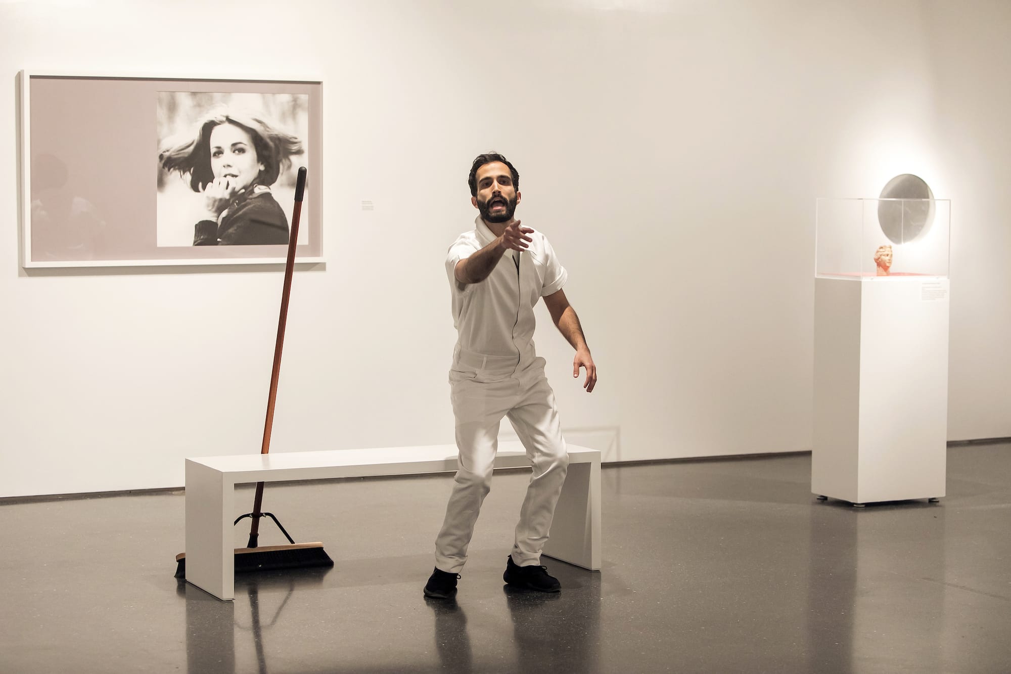 David Levine’s new monologue at the Brooklyn Museum raises concerns about authenticity in our dangerously mediated present. Titled Some of the People, All of the Time, it builds on Levine’s ongoing interest in the working actor and the different kinds of spaces in which performance is received. He has, for example, paid actors just to do their day jobs. For another piece, he trained a method actor to plant potatoes, and the performance consisted of the actor planting potatoes in a field in Germany.
