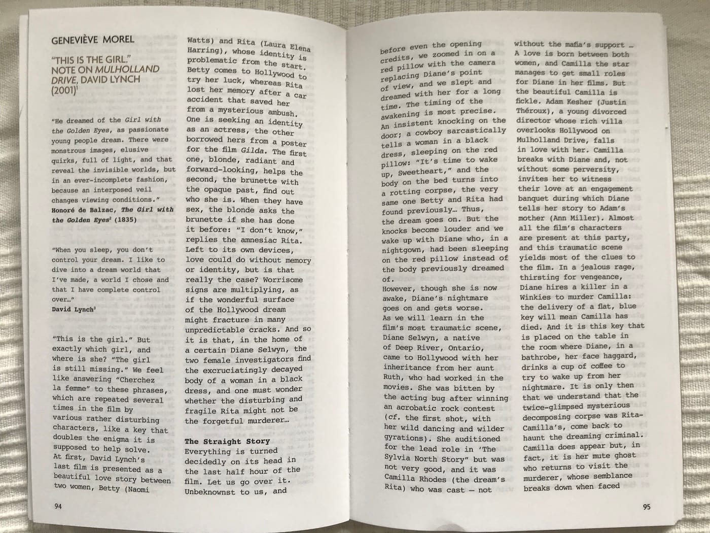 An essay by Geneviève Morel in Back to Mulholland Drive: Minimal Fantasy