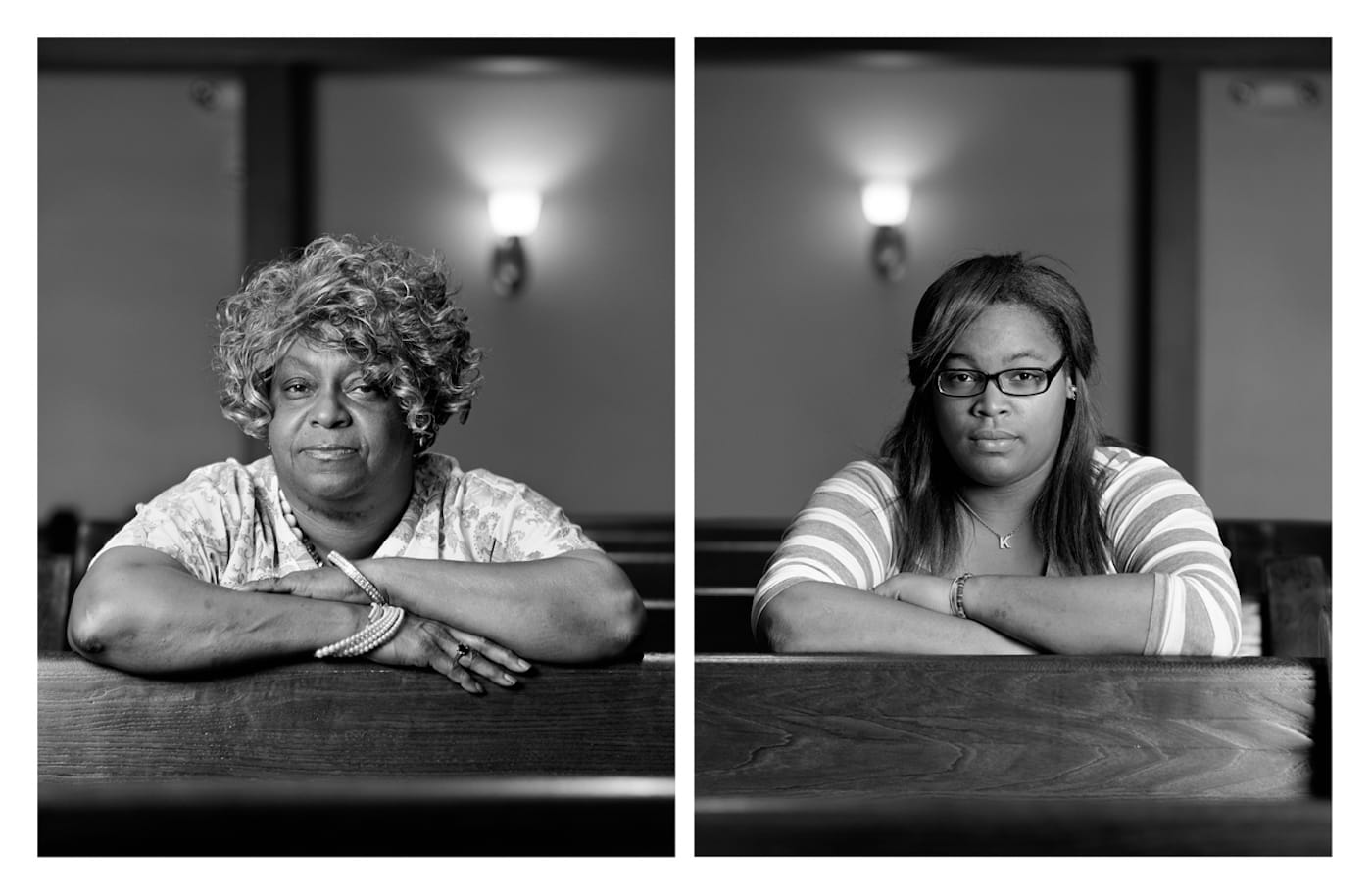 Bey’s black-and-white portraits — presented as thirteen diptychs — show children the same age as the four girls and two boys who died in 1963, alongside adults who, in 2013, were the same age that the kids would have been. The subjects are Birmingham residents, and many of the adults were close to the bombing in some way: some lived nearby, or knew a victim; all remember it. The Birmingham Project debuted with an accompanying video at the Birmingham Museum of Art (where about half the photos were taken; the other half were snapped at the 16th Street Baptist Church), and is currently on view at The Patricia and Phillip Frost Art Museum-Florida International University. Even without the video, the photographs are striking.