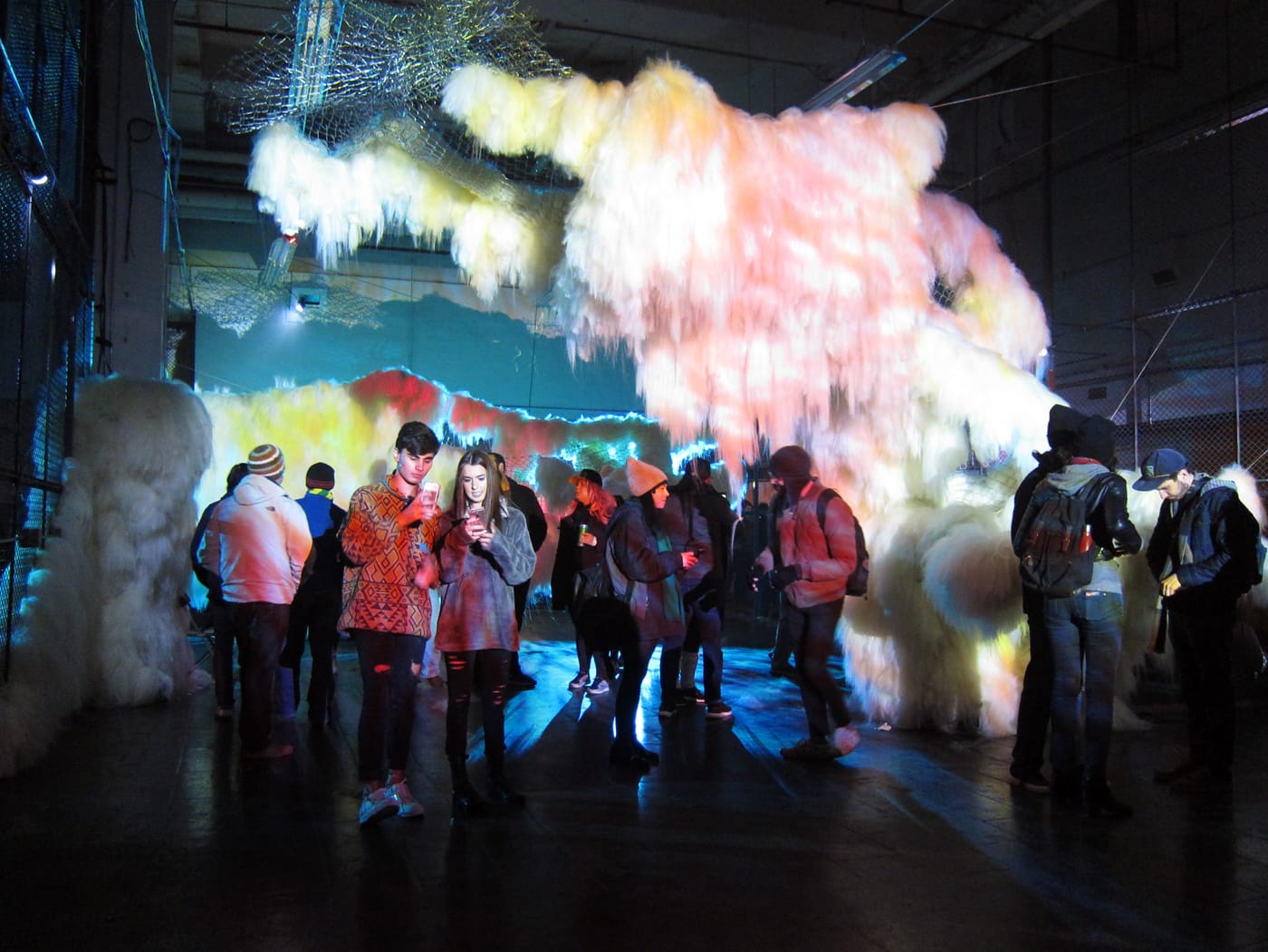The interactive audiovisual works Mexico City-based studio Cocolab develops are so complex that they require their own, unique hardware and software designs. Cocolab has worked with a variety of collaborators, including Pedro Reyes, helping the artist create and program “Disarm” in 2012, a project that featured a music-playing orchestra of de-commissioned weapons formerly owned by drug cartels. In one of Cocolab’s most recent projects, “White Canvas,” an ocean of lights accompanies a soundtrack of crashing waves, birdcalls, and ambient music.