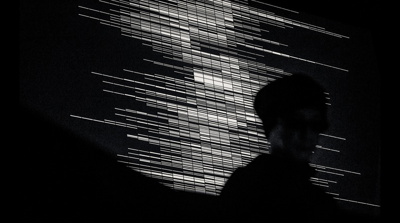 Although most of the artwork at Day for Night will play on a loop throughout the festival, there are a few visual artists performing works live on stage. One of these, Ryoji Ikeda — who was an artist-in-residence at CERN a few years ago — takes the stage late Sunday afternoon, performing “supercodex [live set],” a piece he recently did at the Metropolitan Museum of Art, creating music and moving images through mixing digital static.