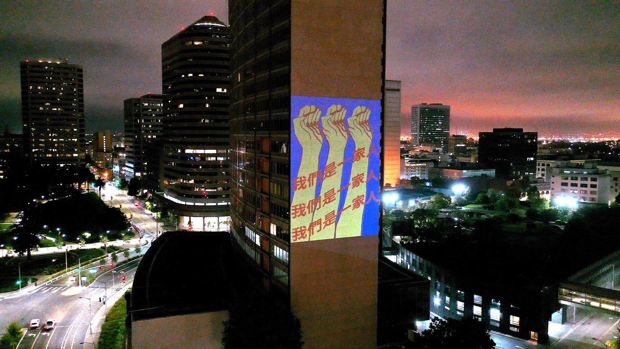 “Dear America, Fix Your Racism”: Asian American Artists Project Messages Around Bay Area