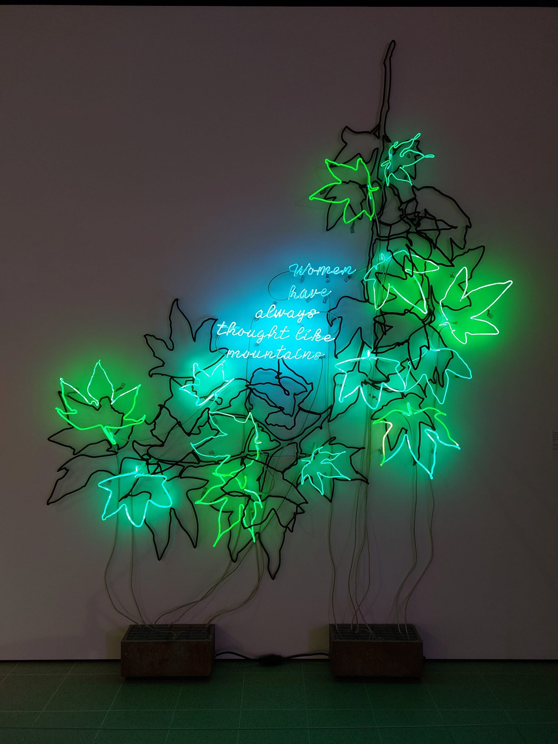 These acts of caring, the exhibition suggests, are undertaken not because of a sense of grim determination, duty, or fear, but because the natural world is a source of pleasure and delight. This idea is encapsulated by a featured quote from botanist, writer, and member of the Citizen Potawatomi Nation, Robin Wall Kimmerer: “I choose joy over despair. Not because I have my head in the sand, but because joy is what the earth gives me daily and I must return the gift.”