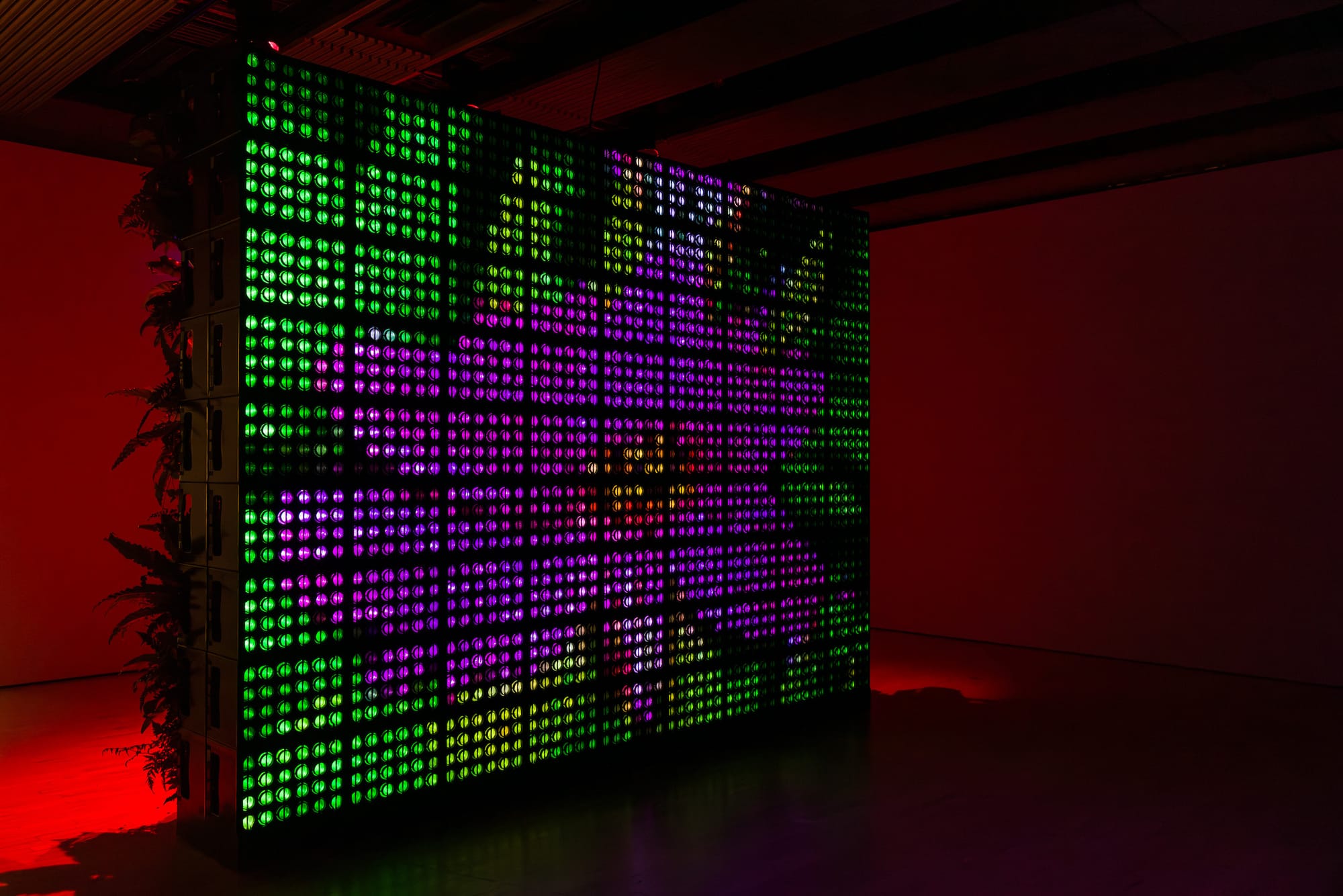 Dear Earth is particularly interesting where it draws out the ways in which capitalist-extractivist systems are interwoven with ecosystems and how we habitually think about the nonhuman world. Hito Steyerl’s “Green Screen” (2023), for example, uses an LED screen built from empty glass bottles to highlight the connection between the climate crisis and the hidden carbon footprint of the technology many of us use every day. Throughout the exhibition, the scale shifts from the microscopic to the macroscopic, from personal to planetary; radical change, these artists seem to say, must be achieved on every level. However, the show doesn’t make clear how this might happen. Will art drive this change if it is primarily seen by audiences who are already concerned about the environment? Do we simply hope for the best?
