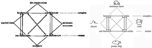 The idea for this series began a year and a half ago when Powers imagined reworking the Klein group diagram from Rosalind Krauss’s “Expanded Field” essay to describe the visual program of Star Wars. What came out of that idea was this series.