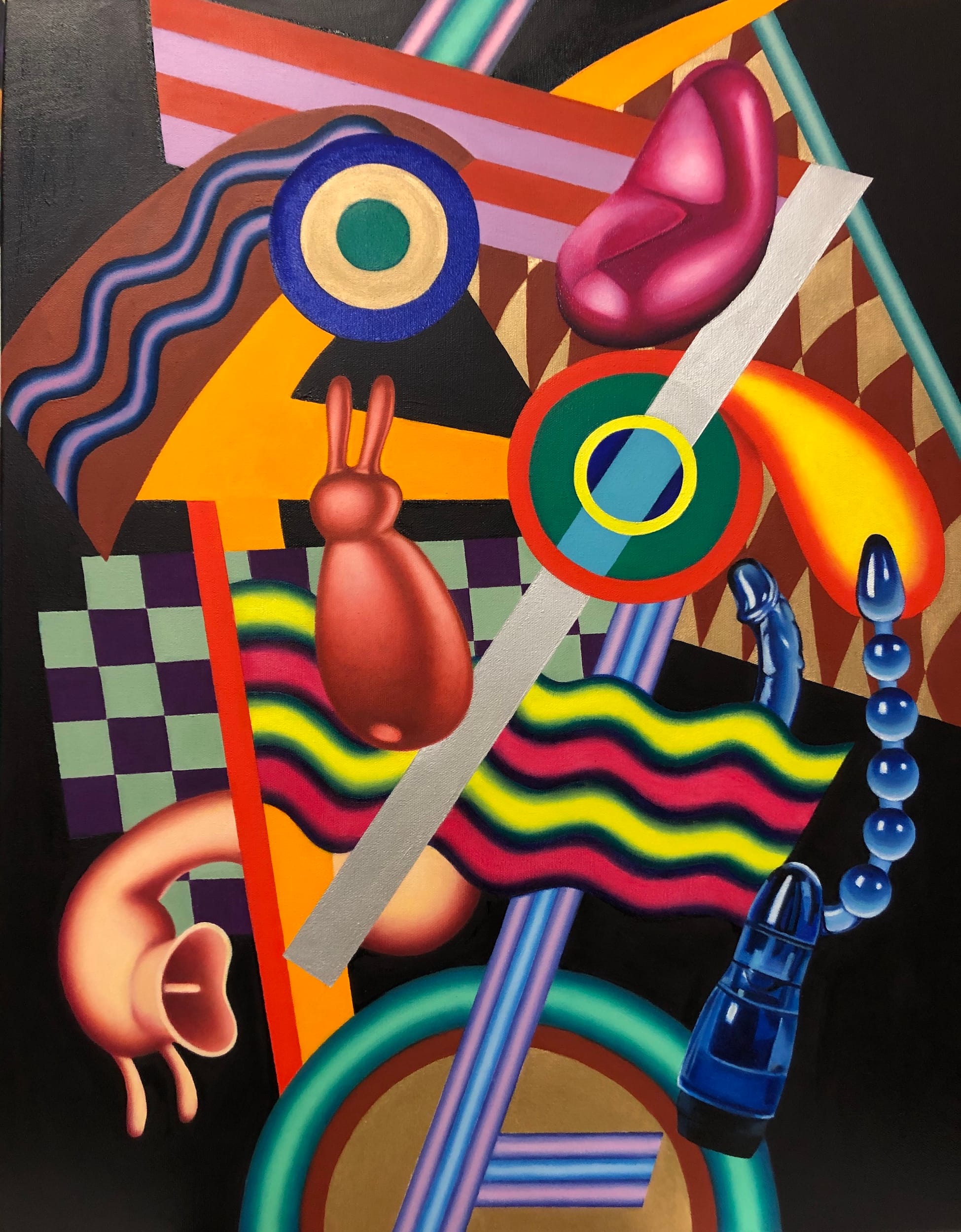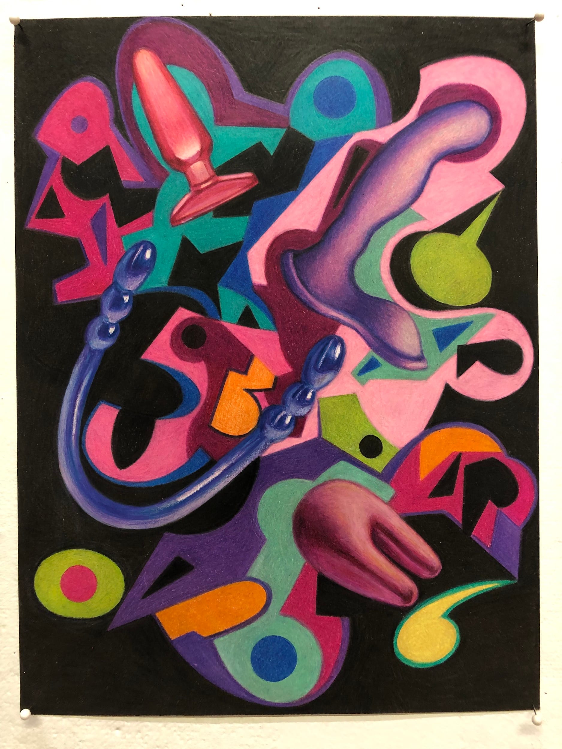 Since Bright retired from her position as Pratt’s Chair of Fine Art in 2017, she’s returned to her painting and drawing roots, with pop-colored compositions that seem to manifest free-flowing desire through abstract forms. Look closely, though, and those abstract forms start to look a lot like sex toys. It was a pleasure to talk to Bright by email about queer desire, sex positivity, and what's next in the latest phase of her wonderfully vibrant and irreverent art.