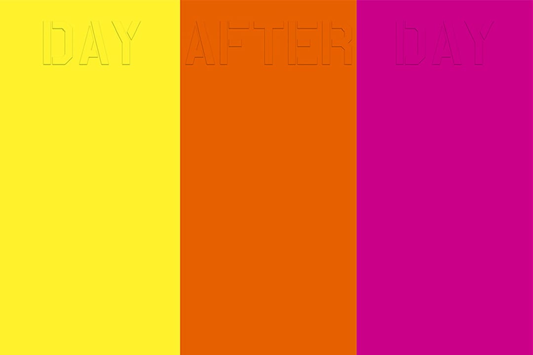 Day after Day, a large-scale digital print commissioned by the Neuberger Museum, is Kass’s first wallpaper work. Inspired, in part, by Warhol’s signature Cow (1966) and Mao (1974) wallpaper, this piece marks an exciting new direction in her practice. The site-specific work is based on one of her favorite paintings, a 2010 canvas from her series more! feel good paintings for feel bad times.