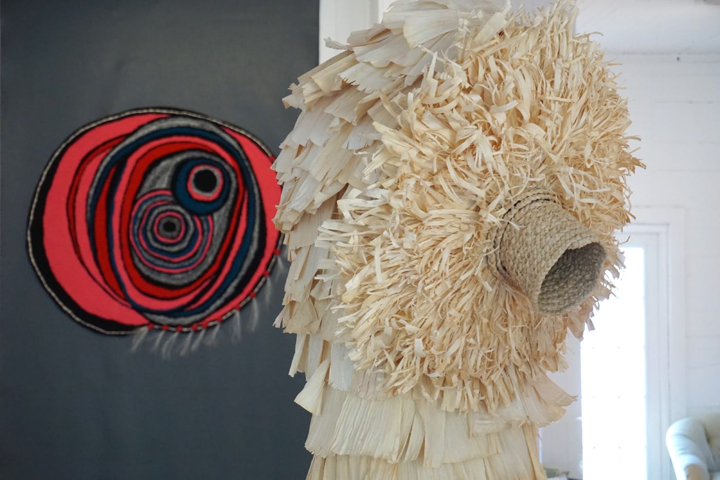The women in Antonak’s family are cornhusk braiders, and her work often utilizes corn husks as base material.