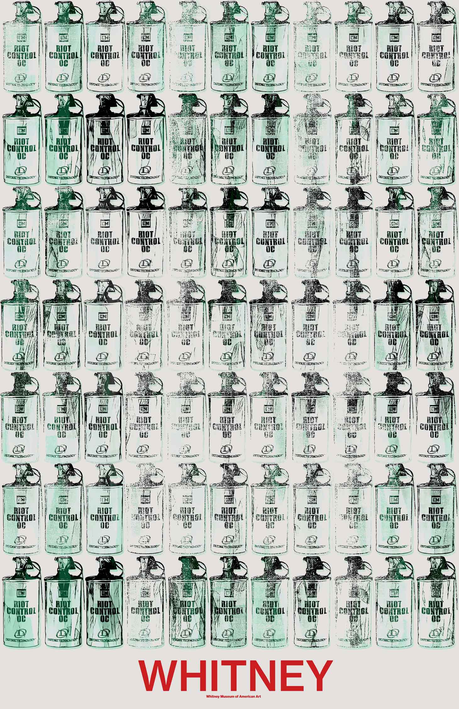 Artists involved with Decolonize This Place have crafted a set of protest art riffing off of Warhol’s Death and Disaster series — prints appropriating images of violent catastrophes and tragic accidents. (On November 27, Hyperallergic reported that Kanders is a “significant contributor” in the popular Andy Warhol exhibition at the Whitney, From A to B and Back Again.) Rather than Warhol’s iterations of Jackie O after the assassination of JFK, they appropriated photographs of Safariland’s tear gas canisters and images of activists barraged by smoke at Standing Rock.
