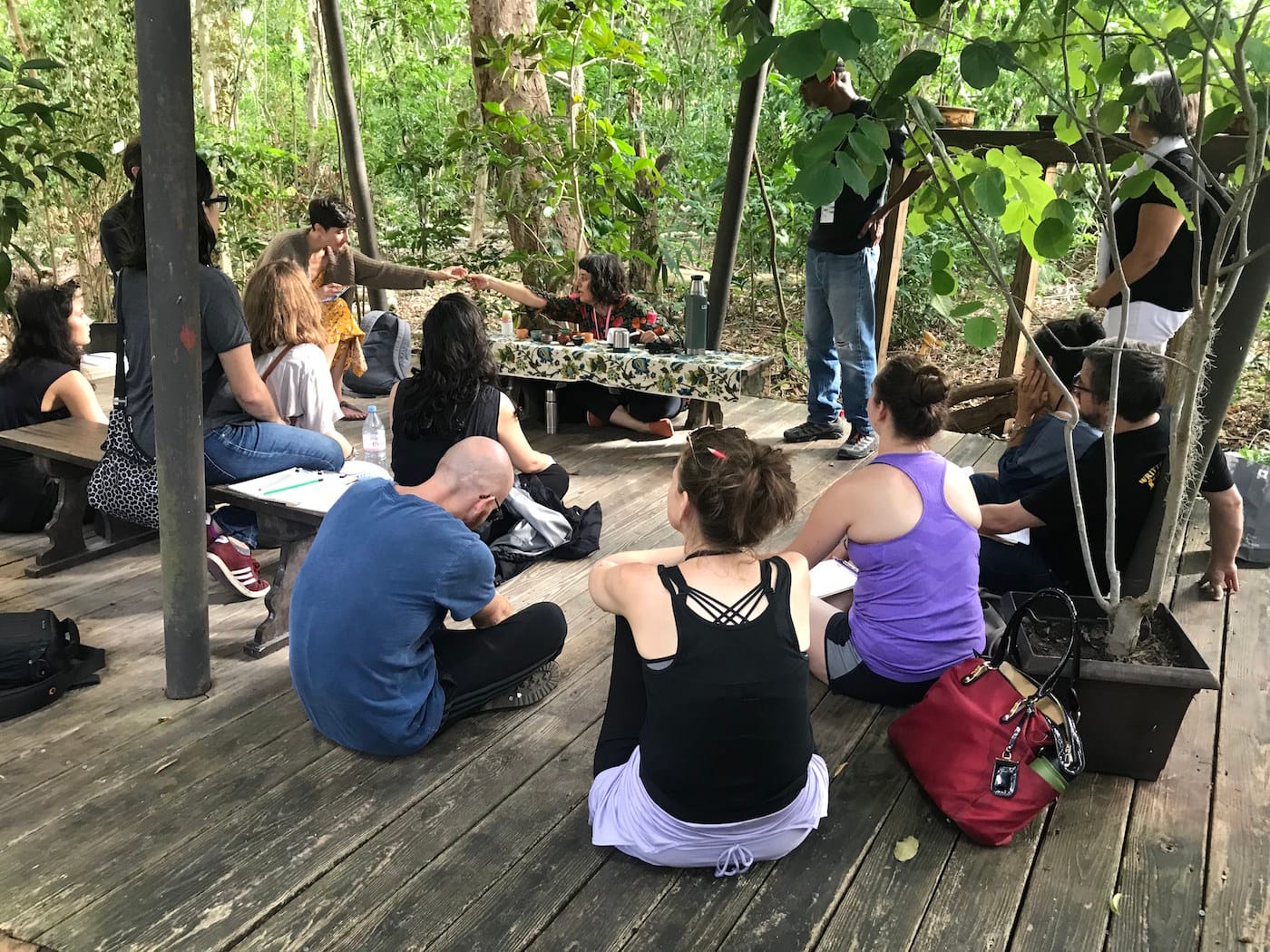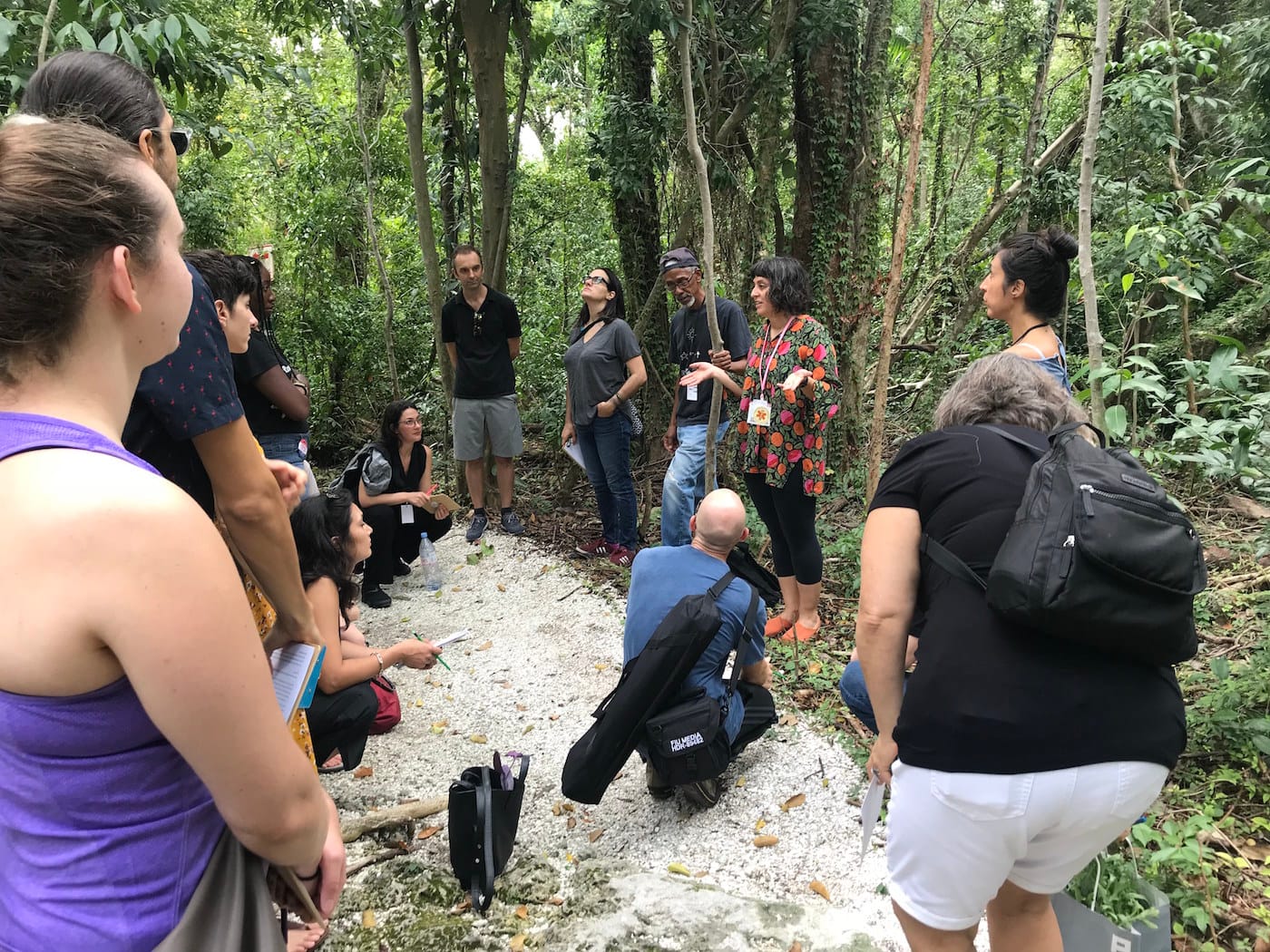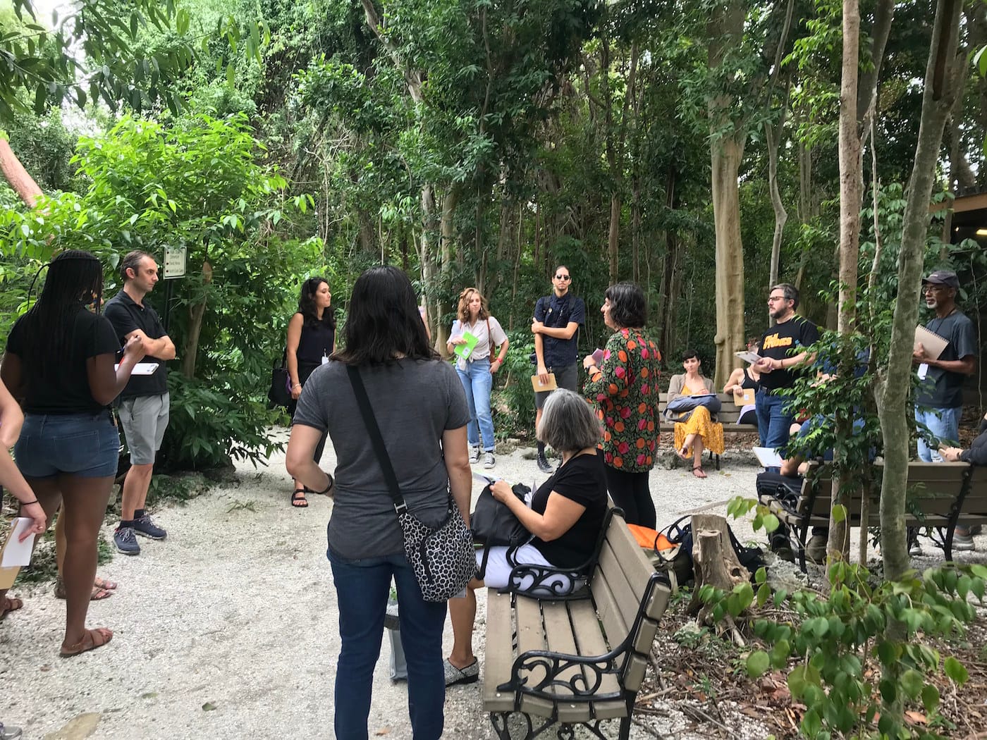 MIAMI — Tropical hardwood hammocks are like the interior of a cocoon, I imagine — mostly dark but lit by errant patches of sun, a little gooey. I’m employing a simile better and first utilized by the artist Onajide Shabaka, who, with artist and forest therapy guide Fereshteh Toosi, led a walk through one of these womblike, canopied forests on November 3rd, part of the Creative Time Summit in Miami, called Creative Time Summit on Archipelagos and Other Imagines: Collective Strategies to Inhabit the World. For a short hour, Toosi and Shabaka suggested how to inhabit a small, insular part of the world: the hammock of Simpson Park, warm and wet, mapped with seashelled pathways. Climate change was a crux of the summit; so was imagining how to live when many of us have been made to feel like our existence is an environmental burden.