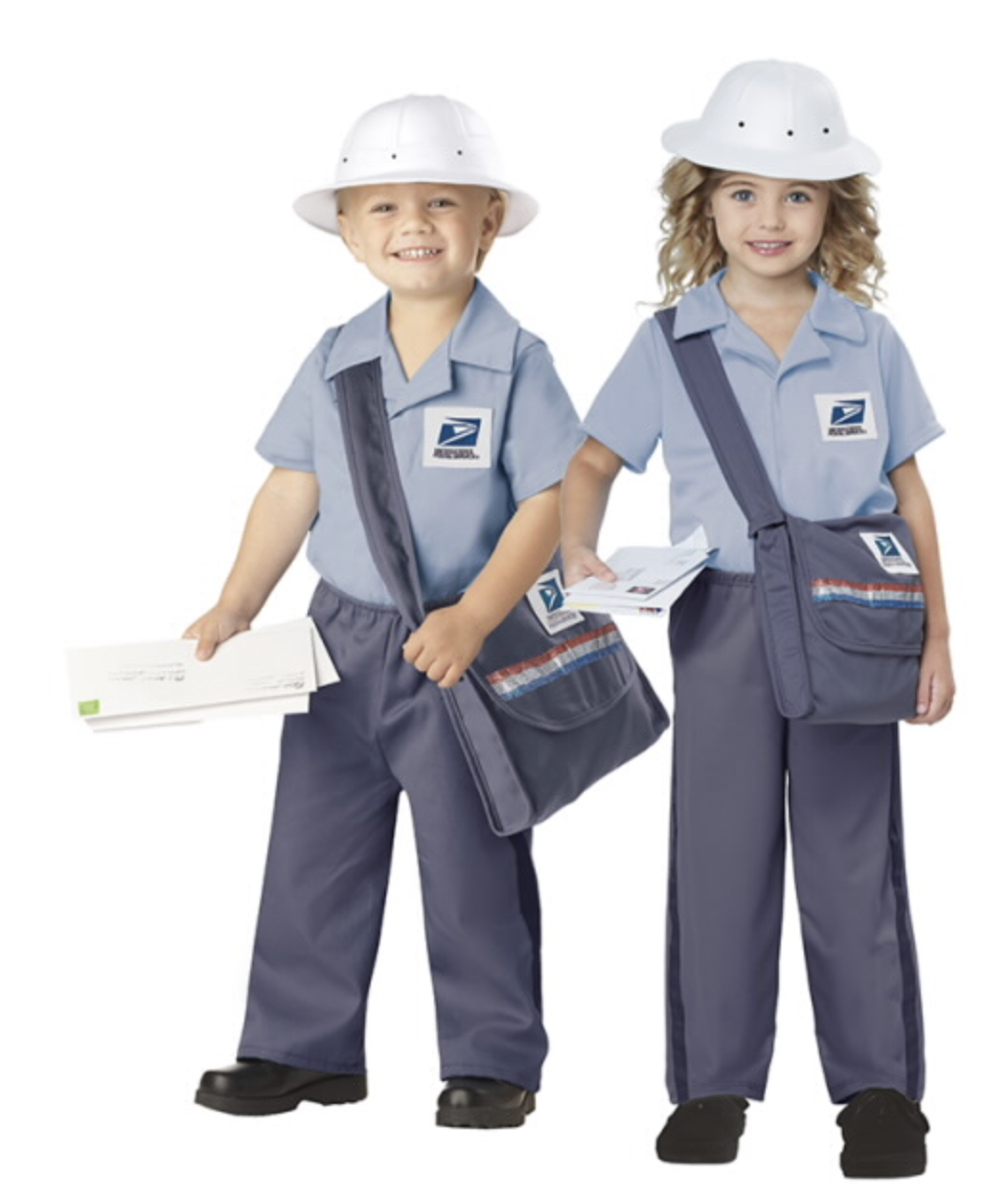 Ok, this one might be impractical for some people, but I think the more we integrate the post office in our lives, the more value people will see in it. I bet you didn’t know that the post office sells the most adorable postal carrier costumes for kids. After barraging homes asking for candy in these cute costumes, maybe your kids can melt the hearts of the most die-hard post haters. I hope.