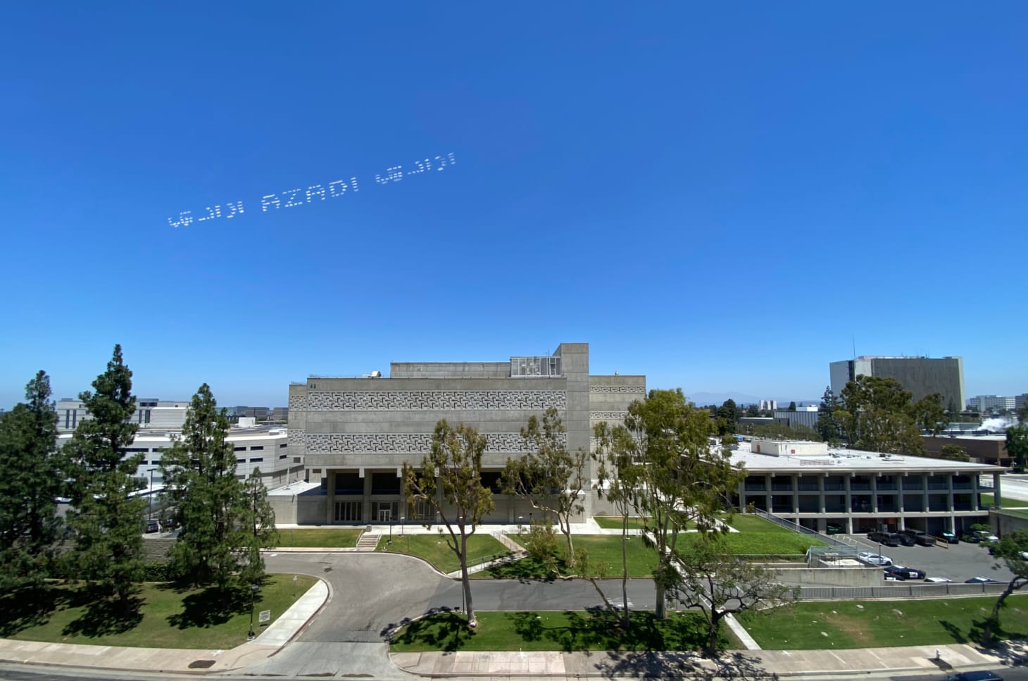 The poignant yet fleeting messages hovering amid the clouds may be more symbolic than actionable, but the initiative is backed by a commitment to support efforts that serve the immigrant community. Its website offers a directory of engaged organizations, including La Resistencia; the Haitian Bridge Alliance; Raices; the ACLU Southern California; and numerous others. Social justice documentarian PJ Raval and producer Farihah Zaman will produce an episodic series on the project focused on issues of migration, identity, and belonging, highlighting the experiences of activists and artists who are first-generation immigrants or undocumented.