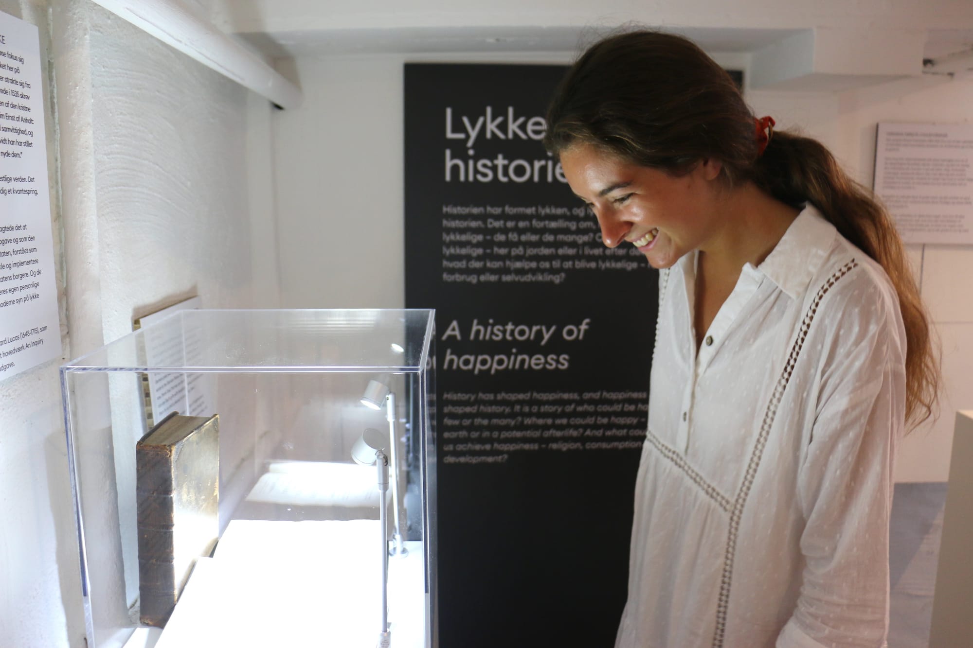 Other installations outline the history of happiness with texts from the Enlightenment period through modern-day self-help books. There is also a “happiness lab” that explains the physiology of laughter and how it changes with age and an exhibit that explains the Nordic Hygge concept of coziness and comfort.