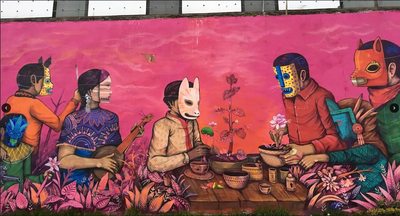 On Sunday evening, the closing reception for DesignerCon will coincide with the opening of Instruments of Change at the Fullerton Museum Center, also organized by Hosner. Beginning in mid-November, the museum invited eight Latin American street artists to create large-scale murals and installations over the course of 10 days; the artists are Alvaro Naddeo, Curiot, Fefe Talavera, Fernando Chamarelli, Hilda Palafox (aka Poni), Paola Delfin, Saner, and Zezao. The works will be unveiled on Sunday, connecting the toy fandom scene with the street art and museum worlds, showing how far DesignerCon has evolved from its niche beginnings.