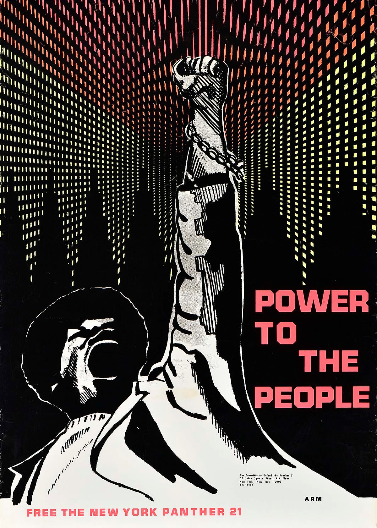 The branding and visual identity of the Black Panther Party for Self-Defense influenced the aesthetics of Black power in what is arguably one of the organization’s lasting legacies. Posters from the late 1960s into the 1970s show members crowned with an afro, armed with weapons, and posed with their fists raised, gestures and iconography that became in popular imagination stand-ins for the values they espoused. On view through September 10 at New York City’s Poster House, Black Power to Black People: Branding the Black Panther Party explores the bold graphics and printed materials that galvanized the public, disseminated radical ideas, and proposed a vision of revolutionary freedom.