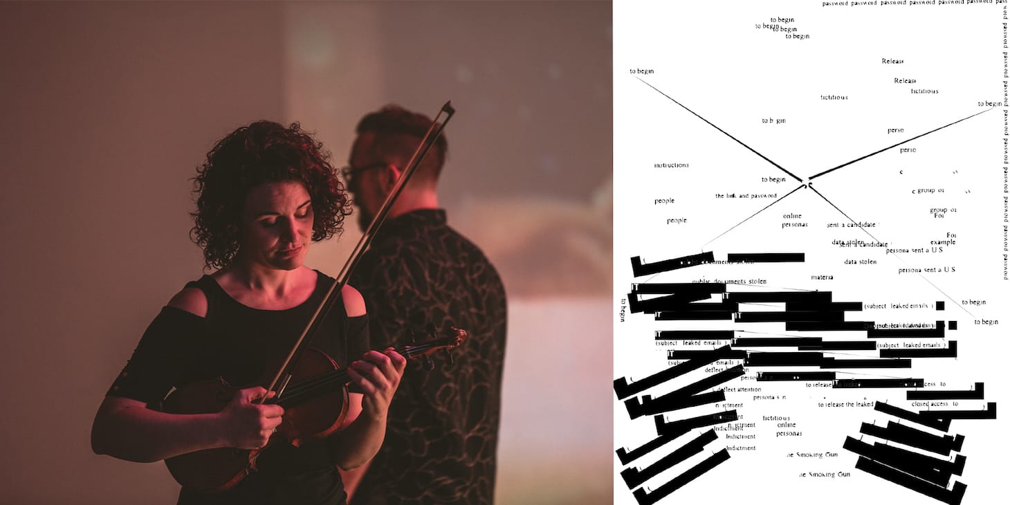 Viewers not yet ready to brave a performance in person will also be able to livestream the event from home, and peruse pages of the score, arranged in their stark elegance like so many pages of concrete poetry. Also of note, the website, designed Quinlan Maggio, will continue to grow with additional politically-themed resources, games, and more to be added following the performance. In the meantime, it directs readers to more information about how to vote by mail and (hopefully) take the first step in curtailing the powers of the misinformationist-in-chief.
