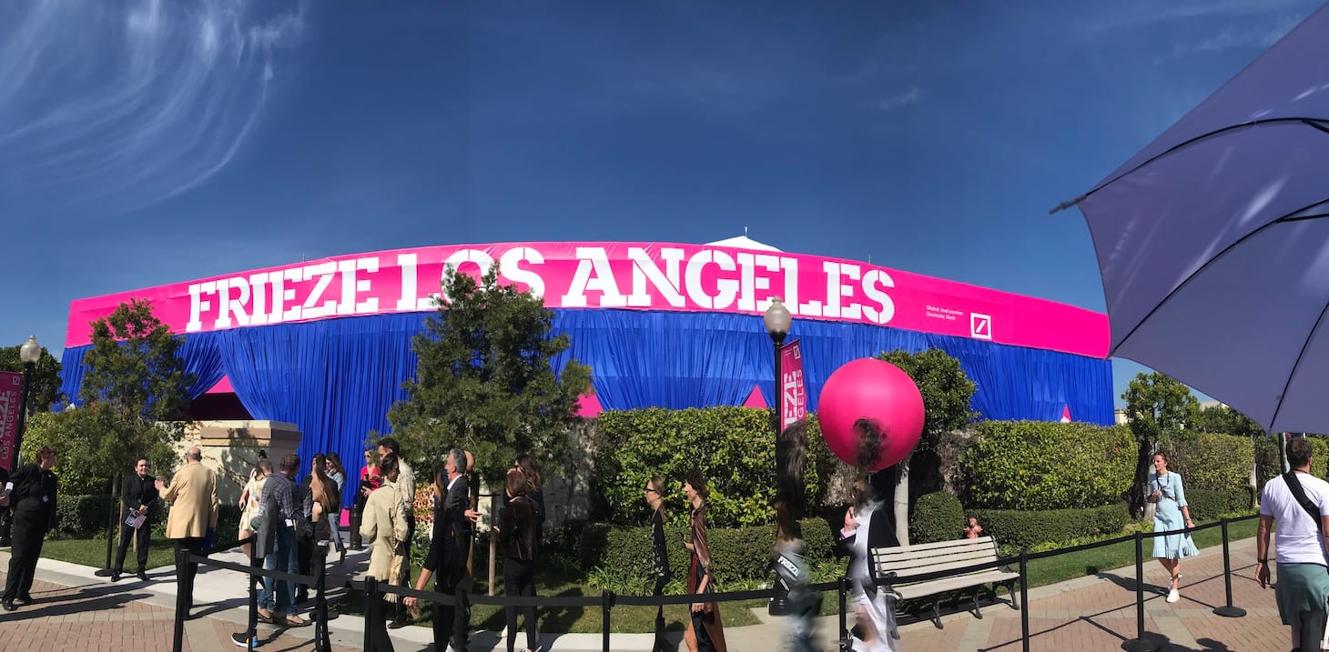 Frieze magazine, founded in 1991 by Amanda Sharp and Matthew Slotover, launched its first art fair in London’s Regent’s Park in 2003. They have said that they simply wanted London to have a decent art fair, and to put art in the park. “We love going to art fairs and sitting up till four in the morning arguing about art with people,” Sharp recalled thinking at the time, conjuring a freewheeling image hard to reconcile with Frieze’s current elite trade show atmosphere and ticket prices ($125 for one-day general admission to Frieze Los Angeles galleries and programs; $25 to access only the programs on either Saturday or Sunday). Deutsche Bank signed on as a sponsor in 2004, the same year that it also sponsored an exhibition in the Grand Banking Hall on Wall Street featuring artworks selected by an array of celebrity curators (Russell Simmons, Mikhail Baryshnikov, Diane von Furstenberg). Back in 2003 and 2004, ticket prices were around £12, and Damien Hirst was not yet the resident of a £34 million mansion that overlooks the very park where the London fair still plays out.