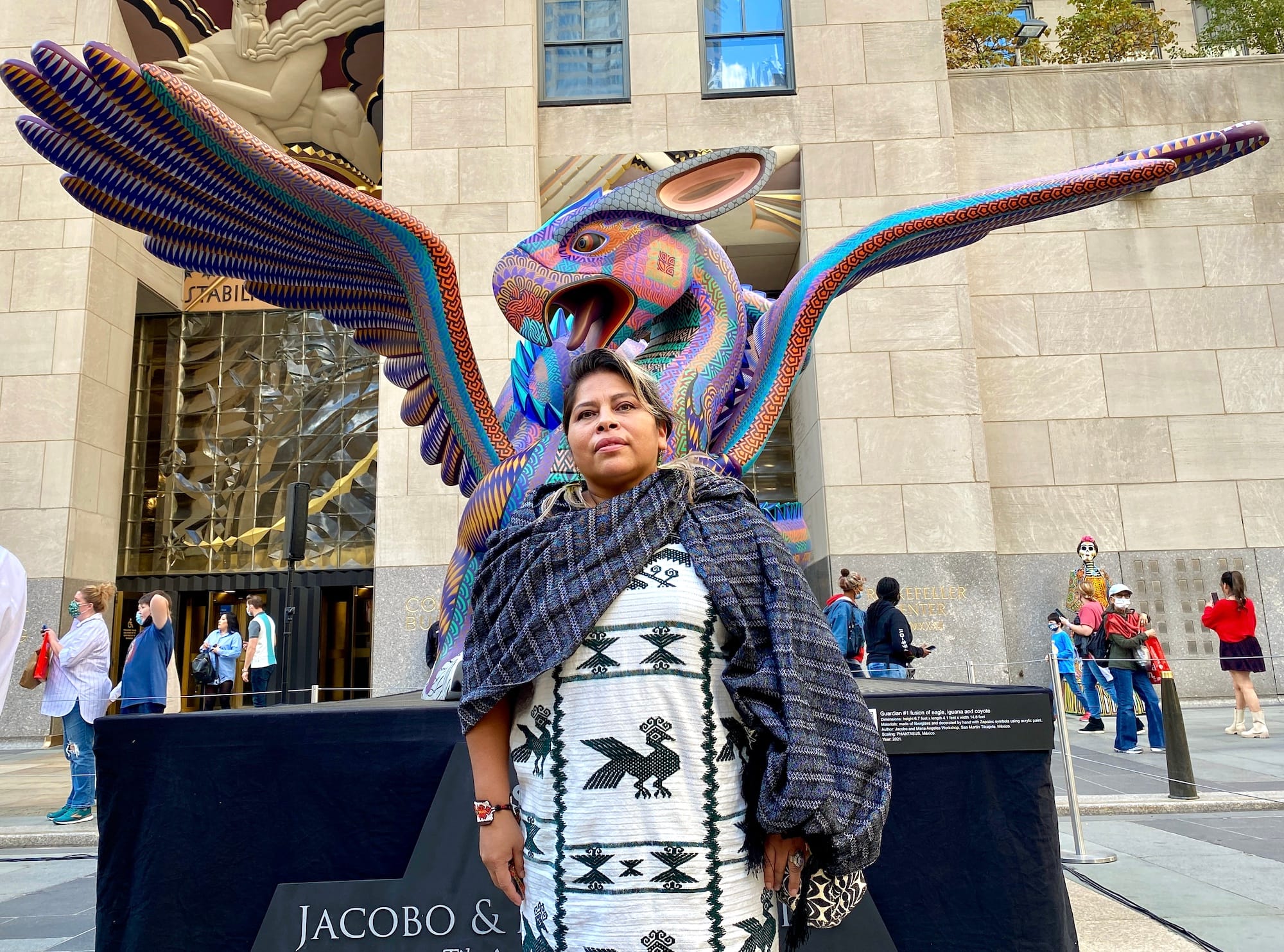 Sculptures of Oaxacan alebrijes, envisioned as guardians of the nation's immigrant community, and catrinas, Day of the Dead skeletons, are now at Rockefeller Center.
