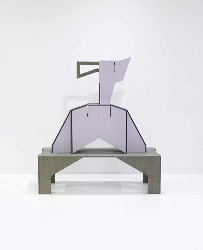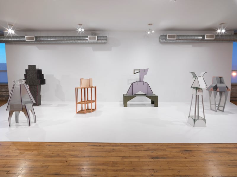 Simpson, who is eighty, has been exhibiting her sculptures and drawings for more than thirty-five years, mostly in Chicago. Since the 1970s, working without assistants, she has been constructing sculptures that explore the echoes between clothing and architecture, both of which are enclosures that are supposedly meant to liberate us. Her materials include fiberboard, copper, plywood, galvanized steel, rivets, aluminum, linoleum, canvas, Velcro, high density foamboard, pencil, and acrylic. No marble or bronze. No carved wood.