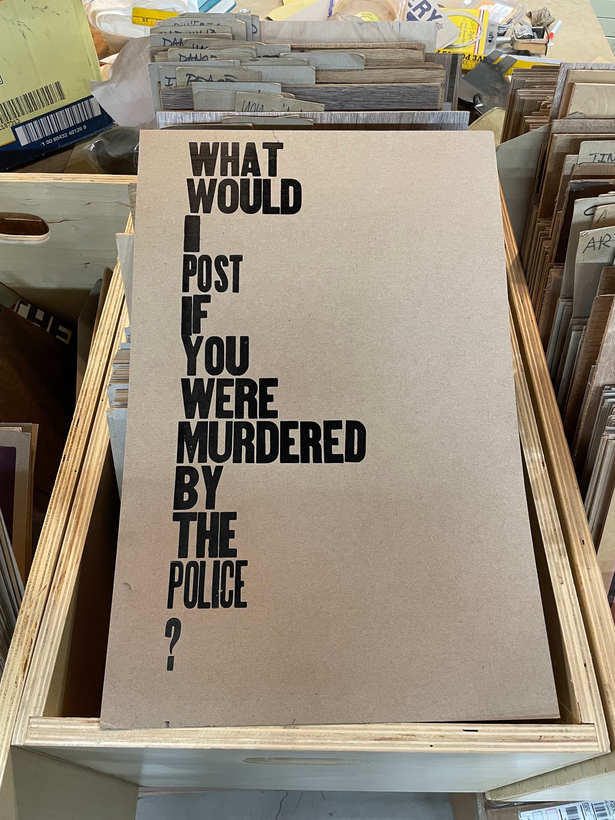 - If you have access to designers, spend time with them. Don’t just send them a list of questions and hope for a glorious soundbite that you can shoehorn into your own thesis. Let them guide your thesis. Let them critique your thesis. Listening is your primary job. I’ve known Amos for six years, collected his work for Poster House, and, as you’ll see in the final online exhibition, I spent time with him in Detroit to do my best to understand and present his point of view.