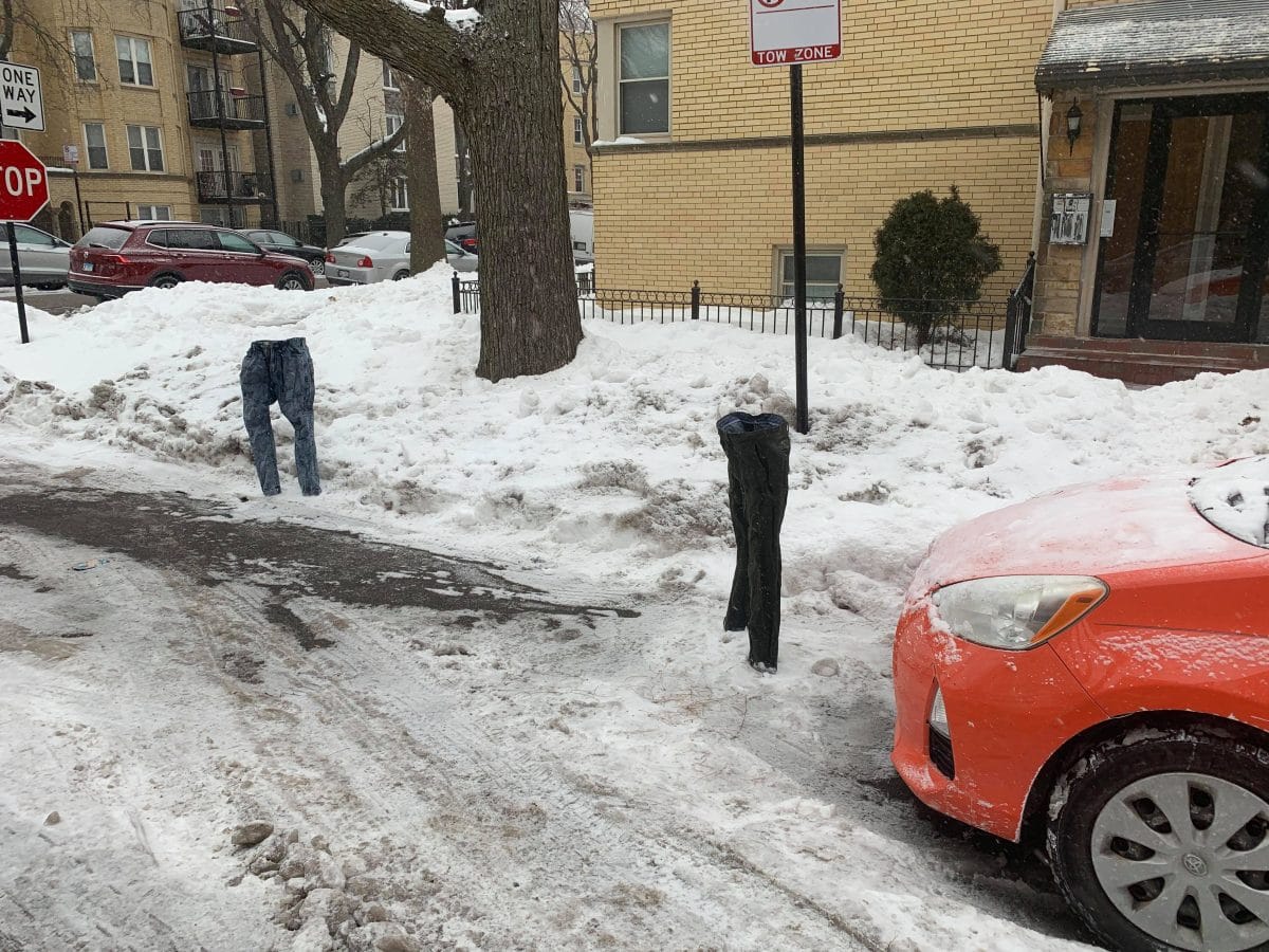 For those unfamiliar with the concept, it’s the practice of putting a piece of furniture on the street to reserve a hard earned parking spot after digging your car out of the snow. People often use chairs, but these days, a whole host of items can be found on the streets of Chicago, including tables, buckets, medical equipment, and even religious figures such as the Virgin Mary or Jesus.