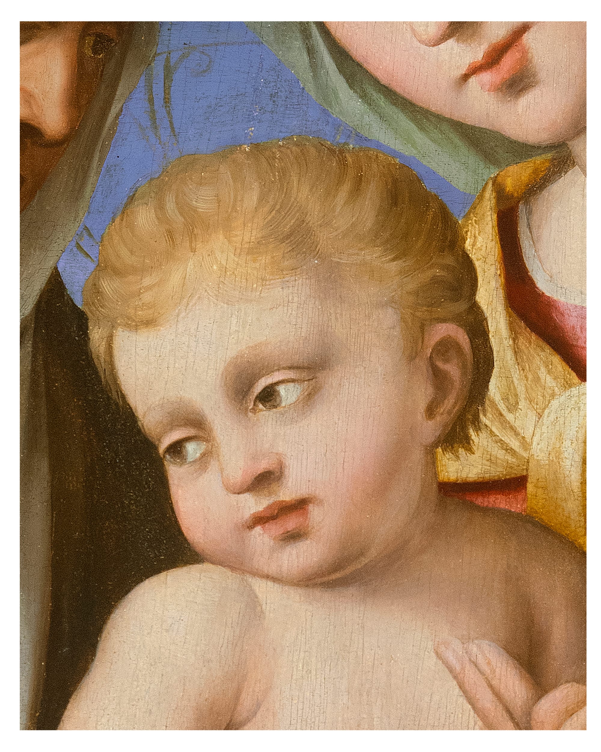 According to the Switzerland-based company Art Recognition, which claims to use AI technology to "accurately evaluate an artwork’s authenticity," the brushstrokes in the “Flaget Madonna” matched those in Raphael’s known pieces. Carina Popovici, Art Recognition CEO, told Hyperallergic that software developed by the company examined photographs of Raphael’s paintings to isolate features of the artist's works and then compared that data with the potential original. The comparison yielded a 96.57% probability of the Madonna’s face and a 96.24% likelihood of the Child’s face being painted by Raphael.