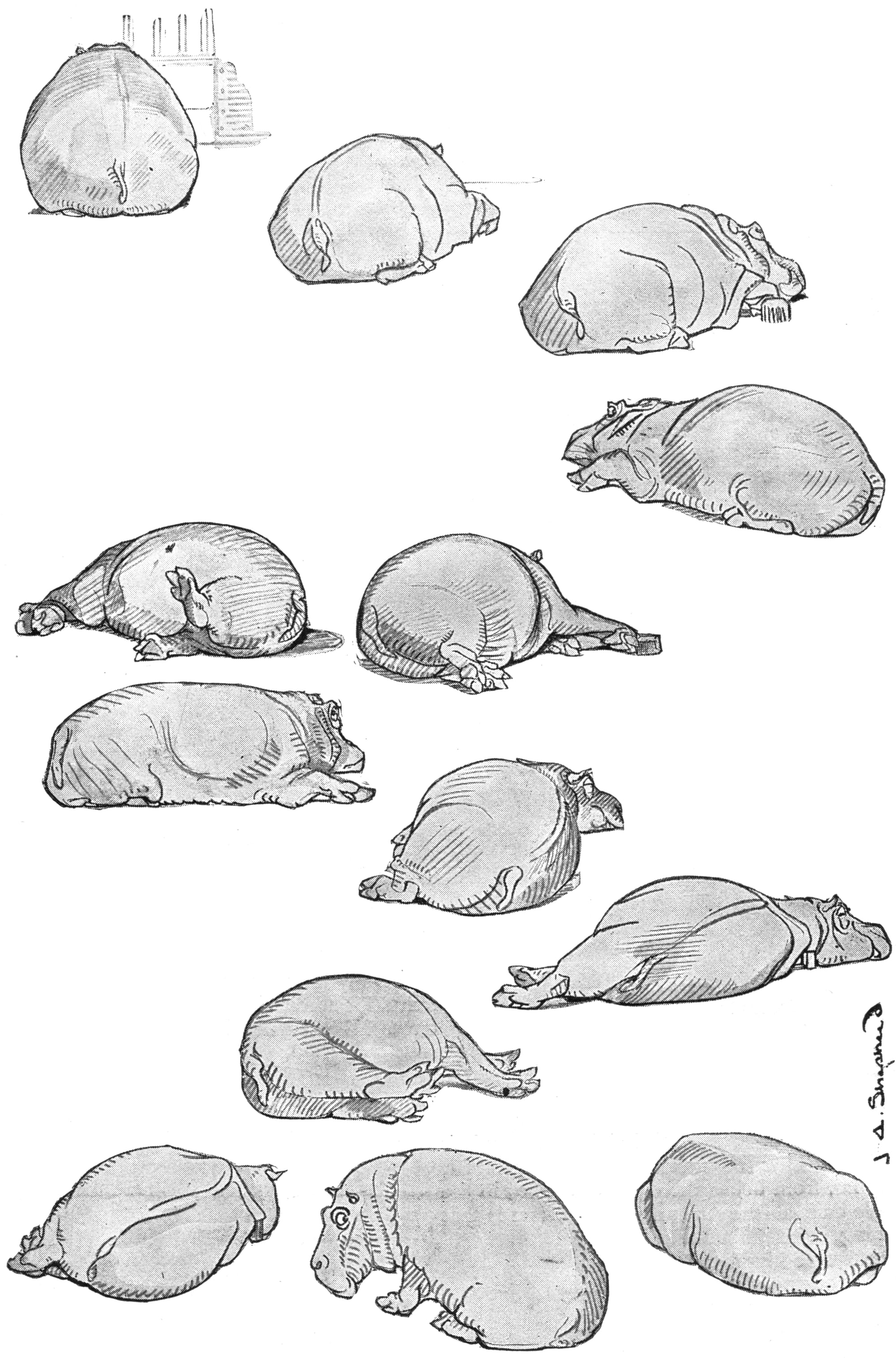 Morrison writes that Shepard seemed unsatisfied with Guy Fawkes’s desire to nap. “It is not easy to catch the hippopotamus at a moment of extravagant agility,” he wrote, describing the process of sketching her as “a task of long waiting, weary sitting, tiresome standing, much hanging about, hoping deferred, heart sickness, and final disappointment.”