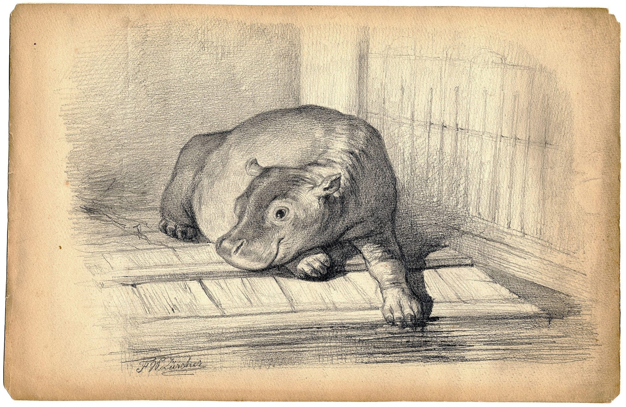 In 1865, Dutch artist Frederik Willem Zürcher drew a series of precious sketches of a baby hippo named Herman Jr. According to the City Archives Amsterdam, Herman was the world’s first hippo to survive a birth in captivity. Born to Herman Sr. and Marguetta, also called “Betsy,” he appears to have charmed his portraitist much as Moo Deng has for millions today. Zürcher drew Herman submerged in his little pool, lounging in the sun, and resting his smiling head on a pillow — but was it really there, or did the artist dream of decorating the hippo’s enclosure to keep him cozy? (If the pillow was indeed just fanciful thinking, I would certainly understand; I daydream about all the tutus I’d like to tie around Moo Deng’s chubby tummy.)