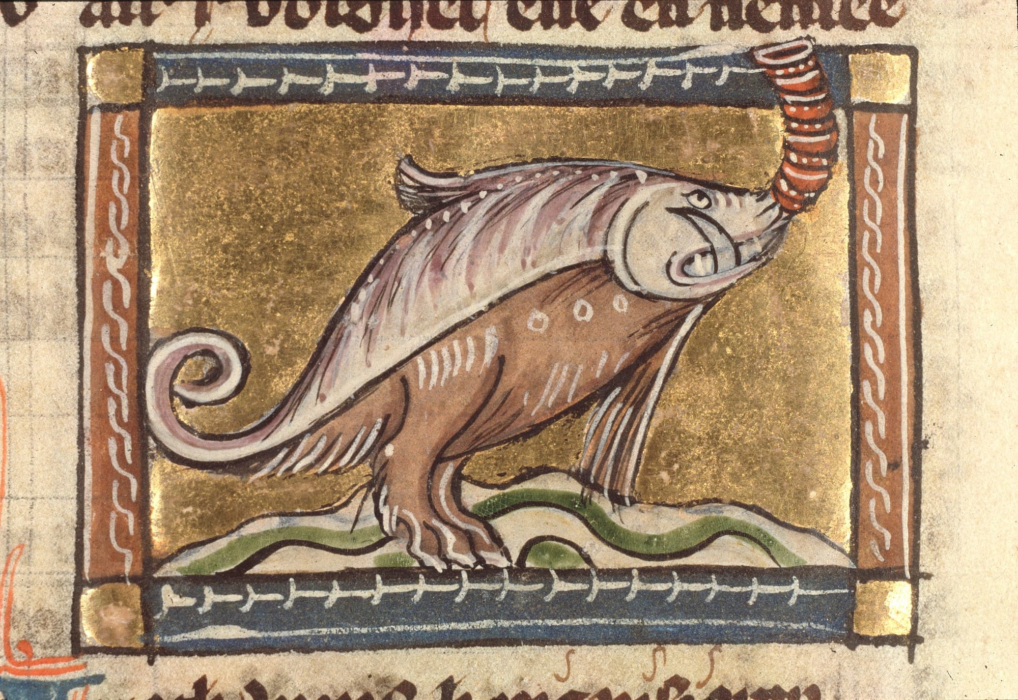 Oh, Medieval European artists! We never tire of your fantastical interpretations of animals you only heard of through a globe-trotting game of telephone. To be fair, what would you do if you were the illuminator for Dutch poet Jacob van Maerlant’s Der Naturen Bloeme (c. 1350), tasked with drawing a “water horse” that also looks like a “dolphin”? While this is the only illustration actually labeled “iphotamus” — an iteration of “hippopotamus” derived from the Greek words for “water” and “horse” — it’s just one of many times the artist attempted to depict a large amphibious creature in Maerlant’s massive manuscript. Do not doubt the Medieval artisan, however: Shirin Fozi, associate curator in the Department of Medieval Art and The Met Cloisters, told Hyperallergic last year that these artists often knew very well that they were drawing something ridiculous — a self-awareness reflected in many Moo Deng memes today.
