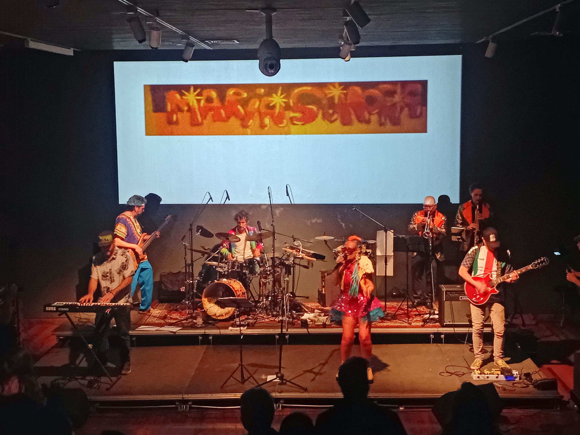 Until now, that is. Nearly four decades after they came together, their self-titled debut, María Sonora, has finally been formally released — an event marked by their first live gig in 31 years. Held at the Centro Cultural Gabriela Mistral (GAM) in Santiago in late October, the sold-out show drew fans to a dim basement gallery where Tan, decked out in a tie-dye blazer behind his drum kit, greeted the crowd with a cry of “María Sonora — 35 years later!” before launching into the buoyant opening riffs of a calypso-tinged tune called “Zandunga.”