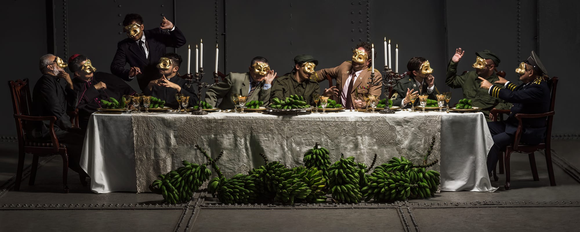 Another work, the series Fotografías de las antiguas instalaciones de los campamentos de la UFCO (Photographs of the Old Camp Installations of the UFCO) (2014), by Elkin Calderón, captures the abandoned buildings of the United Fruit Company in Magdalena, Colombia, where the company massacred protesting banana workers in 1928. Calderón’s pictures radiate a haunting stillness, showing the camp’s current state of decay and hinting at its tragic past. This and other works are accompanied by detailed texts that offer deeper context. La Fiebre del Banano / Banana Craze uses its dynamic, extensively researched online interface to its advantage, encouraging viewers to explore and discover at their own pace. The project shows us that the banana is much more than just a fruit.
