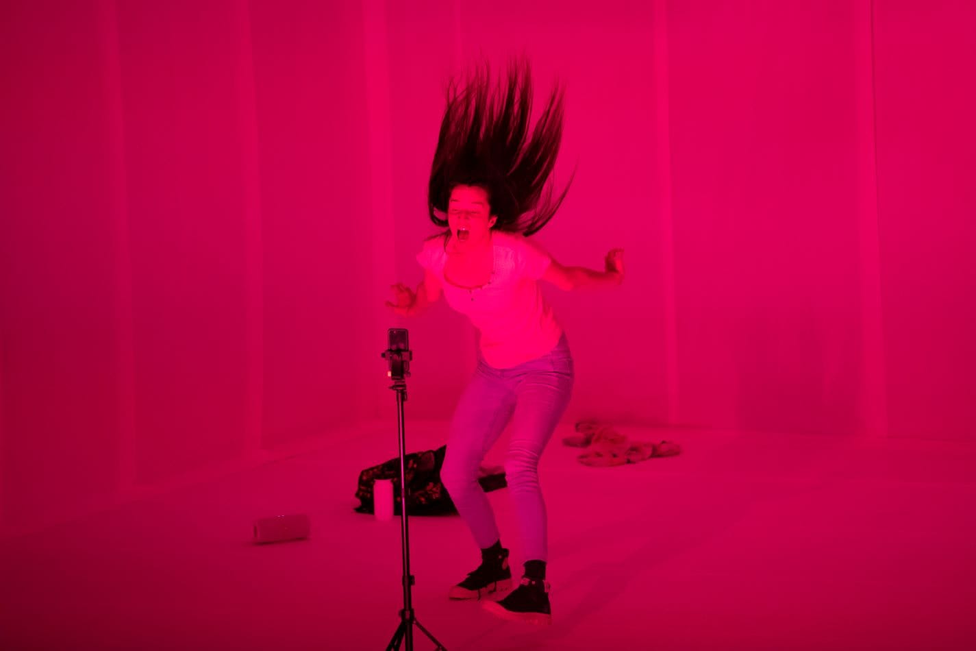 “Every single moment of every single day, I am victimized by people who don't want to admit the validity of digital theatre,” Michael Breslin told Hyperallergic in an interview. Breslin is the cocreator of the Off-Broadway show Circle Jerk, which aired in a part-live-streamed, part-on-stage design in June and became a finalist for a Pulitzer Prize for Drama. Like the recent production _jeanne_dark_ by the French writer-director Marion Siéfert, which premiered this September in the French Institute Alliance Française (FIAF) Crossing the Line Festival, Circle Jerk is a hybrid form of tech theater grounded in the crossdisciplinary present. Yet the future prospects of the form could be bogged down by production rules and restrictions stuck in the past.